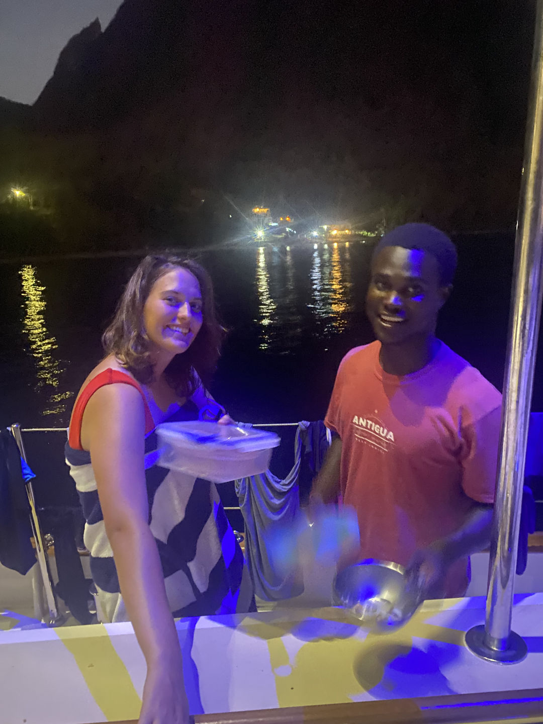 Last night we started our trip back up the West Indies, island hopping our way back to Antigua. After untying our warp from the palm tree and raising the anchor, we stopped by a rock arch made famous by Captain Jack Sparrow, sailing his sinking boat past it during the opening scenes of Pirates of the Caribbean. Our visit was less dramatic as it was dark, misty/smoky, and lacking the decaying pirates in cages, but a fun drive-by nonetheless, with some of the more enthusiastic crew exclaiming that it may be the best experience of their lives.