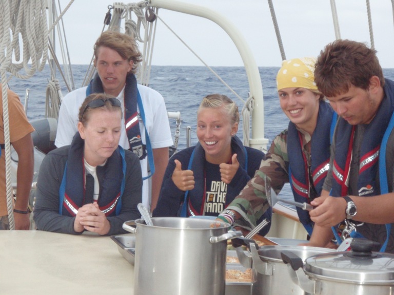 Day three of our passage started out this morning with a beautiful sunrise for Watch Team 2. This is always a good watch to start out the day because something about seeing the sun come up helps to lift the spirits. The most exciting part of my day as skipper was requiring that everyone shower because some of the shipmates were beginning to smell. Next to the smell was our amazing leadership class, which consisted of playing Name That Tune to guess what leadership skills we would be discussing. Moshanda has quite an amazing mix on her iPod, so this made for a very interesting class. Other than that, the day was good. We ended the day as quickly as it came with another great sunset.