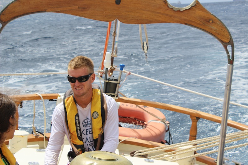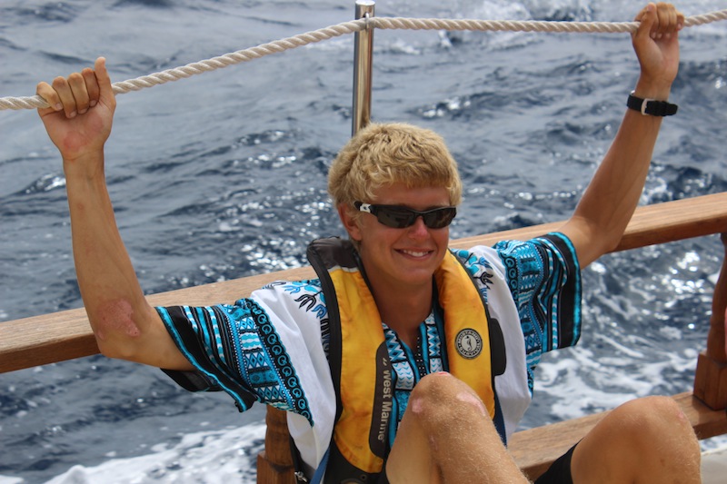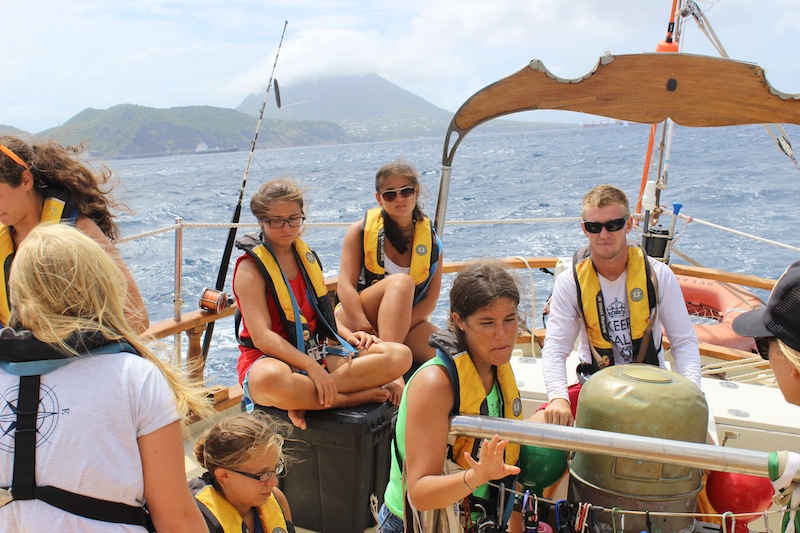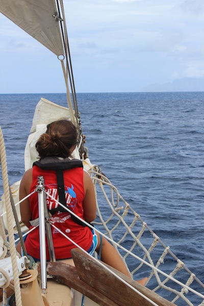Today started off with a bit of a rainy breakfast. We ended up on deck once the rain stopped. It consisted of oatmeal and some delicious fruit. Passage prep went surprisingly quickly, and thus, we were underway to Saba. Our sail went fairly fast as we had a favorable wind angle. Once we arrived at Saba, we had the option to either rest up, study, or work on our group research projects. Next, we had shower time and the challenge of trying to accomplish backflips. Some caught on a bit quicker than others. Following the back-flip session came dinner with a delicious Mexican Lasagna. After dinner, we pumped the jams, and there was a little dance party mixed in with cleanup. We ended the night with a film about Irving Johnson, who was a famous sailor and the forefather of education at sea. It meant a lot to us because our rescue dinghy is named after him.