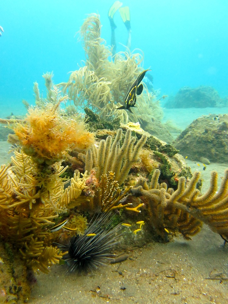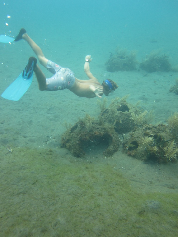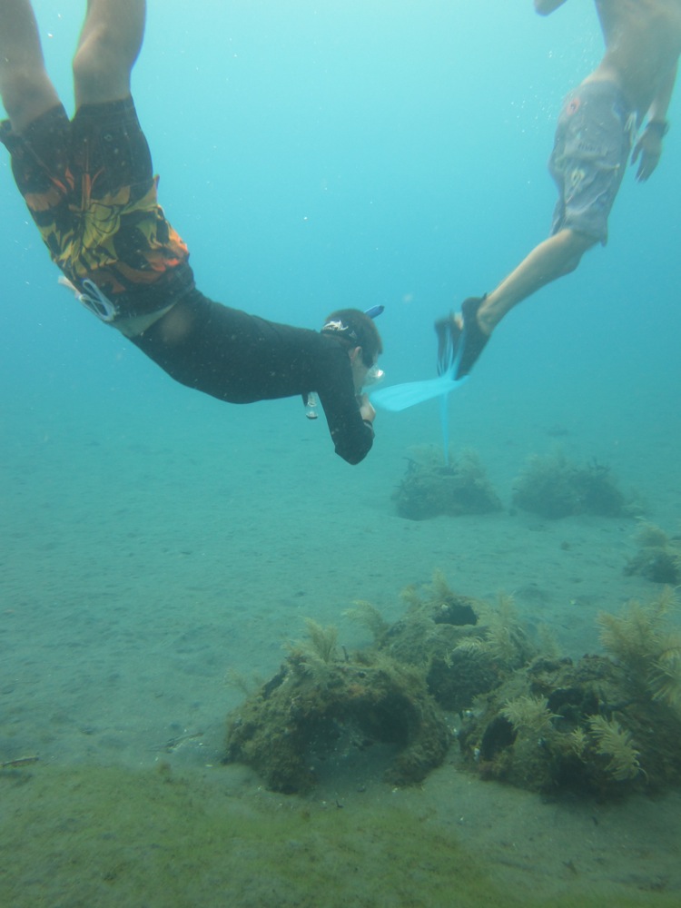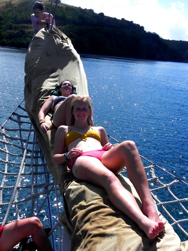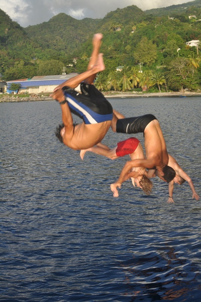 Today, we pulled up anchor at 6 am and headed for dive castaways. After breakfast, we all snorkeled together at Wild Cat Reef. A place where Captain Steve, although with the help of past Sea|mester groups, laid artificial reef balls on the ocean floor in past years. We got into the water and found it to be a bit cooler and murkier than we were used to. However, once we dove below, we soon found the crystal clear, warm Caribbean waters we have become used to. The artificial reef balls were covered with beautiful marine life, from lobsters to juvenile French angelfish, peacock flounder, and moray eels. After our snorkel, we had some time to swim as we waited for lunch to be served. After lunch, we moved to Roseau, where we got some much-needed internet time at a local hotel. We had our marine bio class on deck in the evening and are now calling it an early night, awaiting our 7 am hike to the boiling lake. Dominica is truly a beautiful place, and everyone is looking forward to seeing what tomorrow has in store.