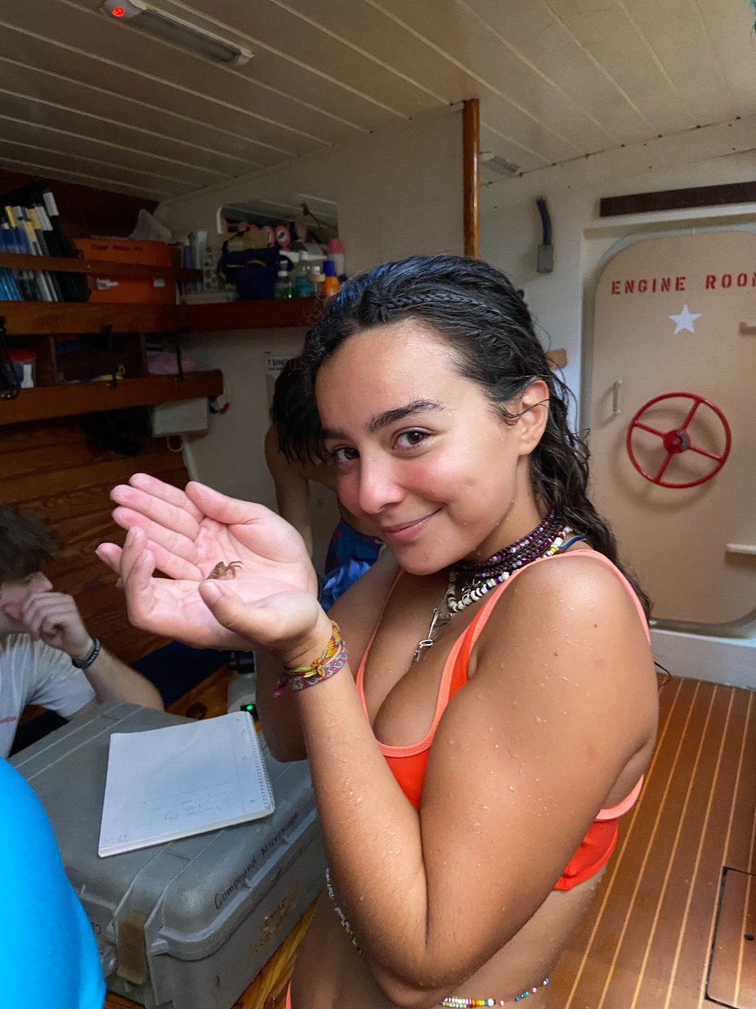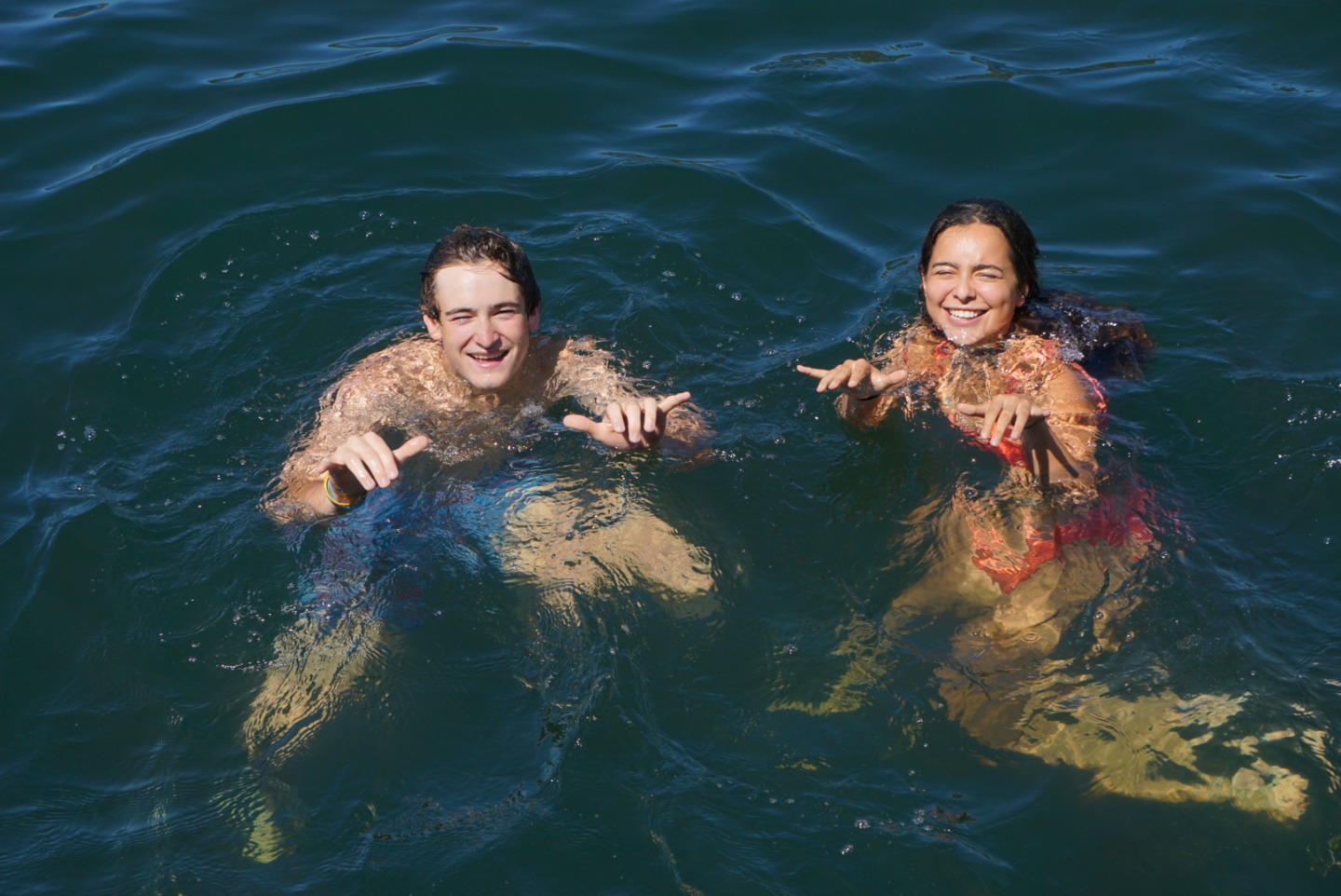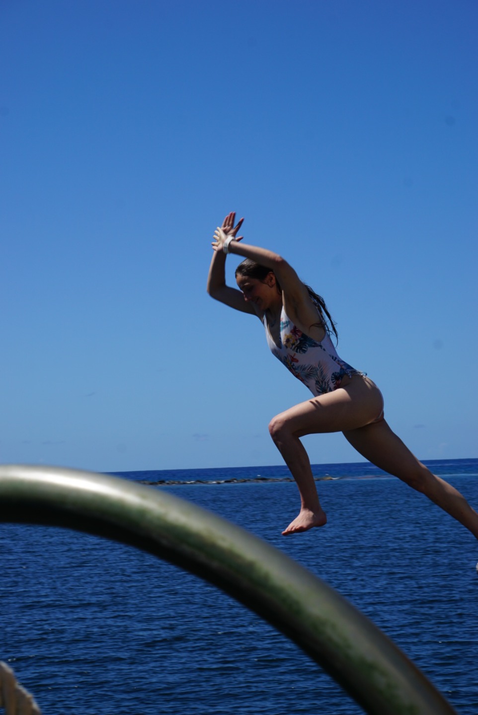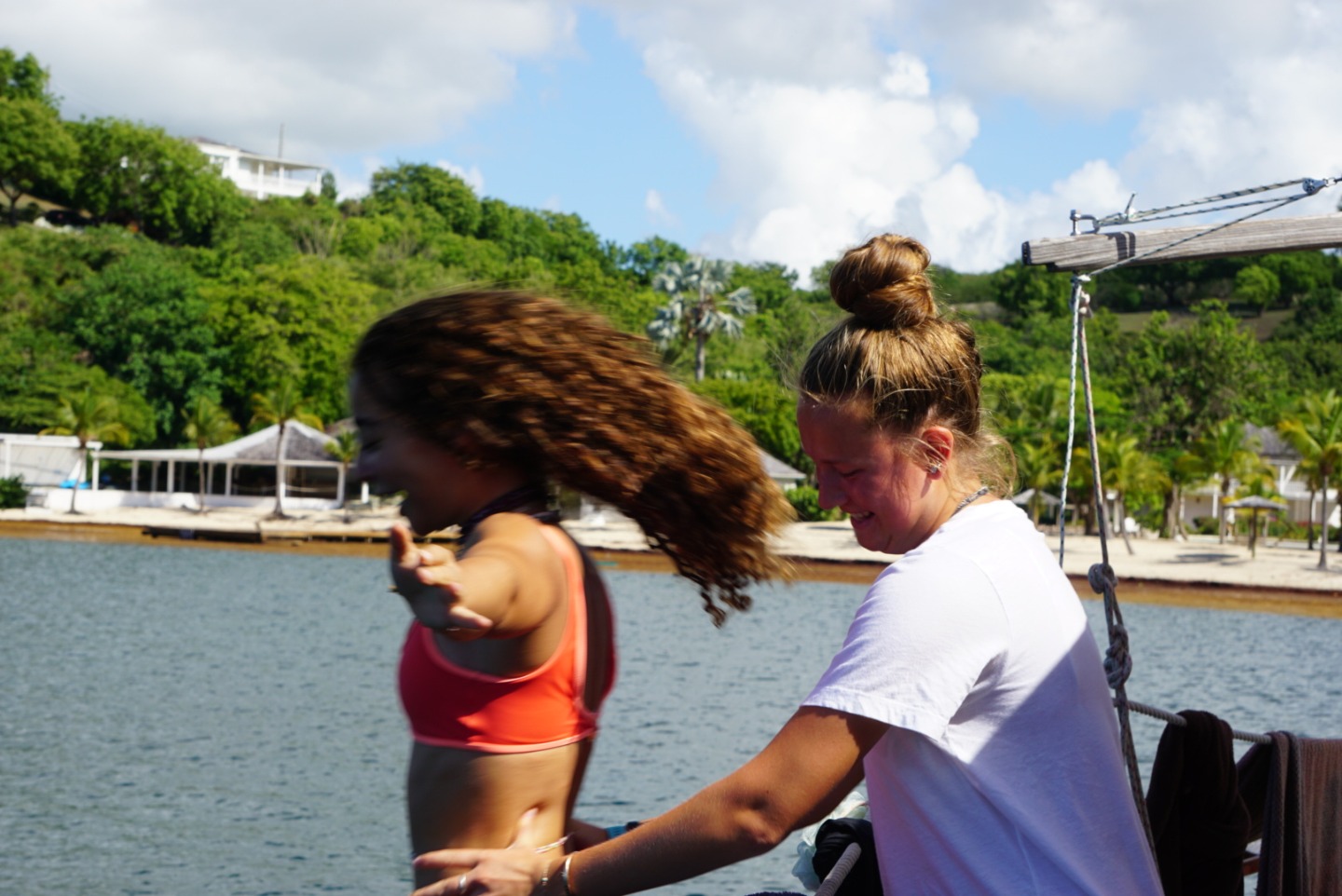 After only four days living in our epic vessel “Ocean Star,” I’m pretty sure that we all spent 90% of the day trying to process how lucky we are to be here 🙂 Today, we started off the morning with an introduction to our Marine Bio and Oceanography classes. After spending the rest of the morning going in and out of the ocean to get water samples and study many cool Bio things I don’t understand just yet, we had an epic deck rodeo where we learned about seamanship and safety (summary: lots of cool and complicated knots). So this morning sounds awesome, right? Wait to hear about the rest of the day. This afternoon will always be remembered among our crew as the afternoon that Stef became our most feared coach. Let me explain: after snorkeling (as the title truthfully says) without snorkels, Stef put her cool glasses and tough coach voice on and decided to design a workout circuit for us to be super fit for the next 76 days. From push-ups to some type of biceps workout she created with a bucket of water, most of us spent a chunk of our afternoon working out together, while whoever didn’t feel like working outset the hammocks for the night. Even though today was full of new experiences and lessons, we also had a lot of our everyday classics: lots of backflips and pictures, lots of hammocks and funny-not funny jokes, lots of Will running into the tiny metal things on deck, lots of Asta and I saying “oh captain my captain” every time we run into Kris, and (of course) lots of me singing “Scuba Sam, Scuba Sam” (to be sang like Spiderman’s theme song). To close up today’s trip log, I must say that today, like every day we’ve been here, felt like a very cool movie full of bad jokes and fun 🙂 Every day that we get to know each other a little better and become a little closer, we realize that we are actually living one of the most epic adventures of our lives and that everything we experience here will be with us forever and will take us exactly where we want to be 🙂