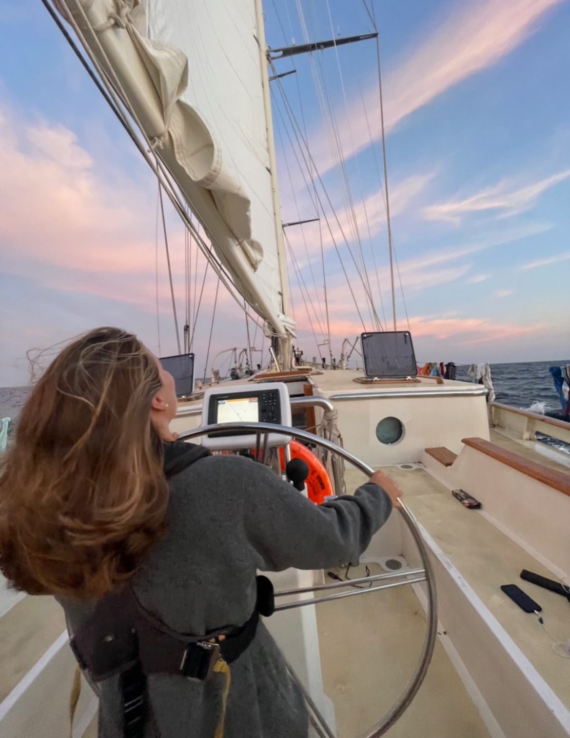 1. Emma killing it on the helm this morning just as the sun began to rise. 15/10