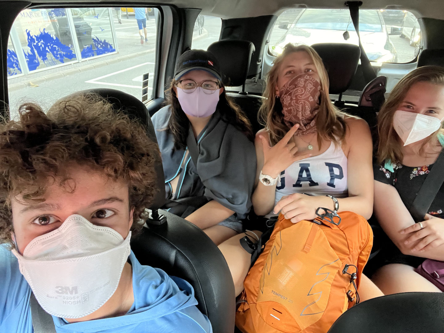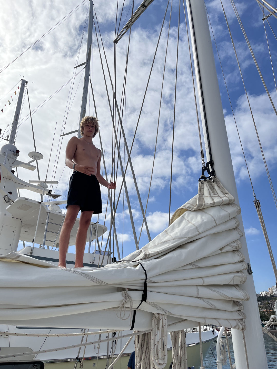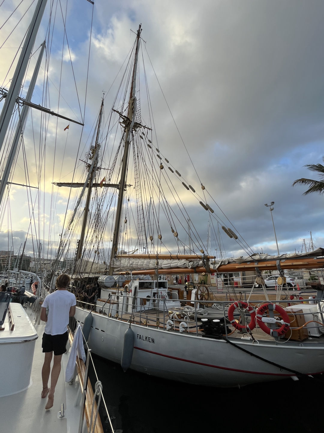 After the movie, we started passage preparation for our voyage to Tenerife, although who knows when we will actually end up leaving. It’s always fun to set up the sails, though. We then left to explore on shore. Some of us headed to lunch and then the beach, and a couple of us went provisioning with Carolyn, but I don’t know much about the provisioning group. I think Ghost and Rachel may say a bit about their experience later. A couple of others and I went to lunch at a place by the beach, and they had some of the best strawberry smoothies I’ve ever had. After that, we rented some boogie boards from a local surf shop and hit the waves! The swell was pretty huge, and apparently, Hendo barfed up a bunch of seawater after accidentally breathing while a wave smacked him in the face.