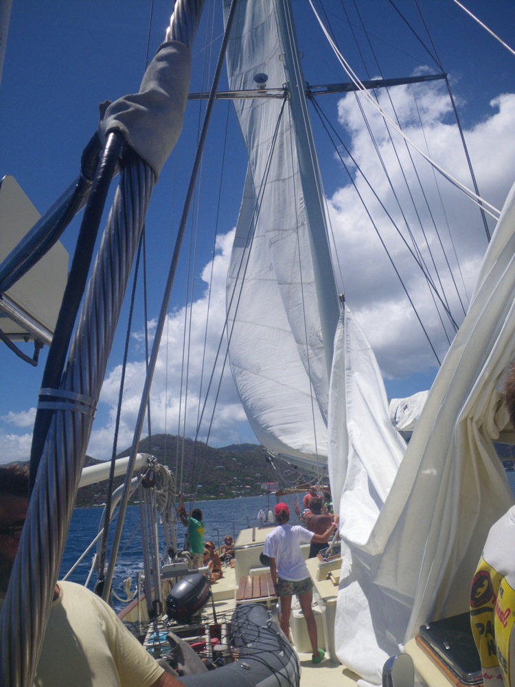 Leaving out of Bitter End, we woke up early and pulled anchor. Ready to clear out of the amazing BVIs and return ARGO to its home for a brief stint in Roadtown Harbor. After eating lunch, we hung out and decided to go to the small island of Anegada. Lifting anchor after lunch, we headed into the wind to set sails. Heading close-hauled on both starboard and port tacks, we zigzagged our way up to Mountain Point. Deciding we would not make it to Anegada. We stayed at Mountain Point for dinner. It was a nice and relaxing day with a lot of responsibility on my shoulders as skipper. The more the students get to know ARGO, the more she rewards us with safe and clean passage to wherever we would like to go. The crew has begun to step back and see how well they have taught us, from Crew to Deckhands.