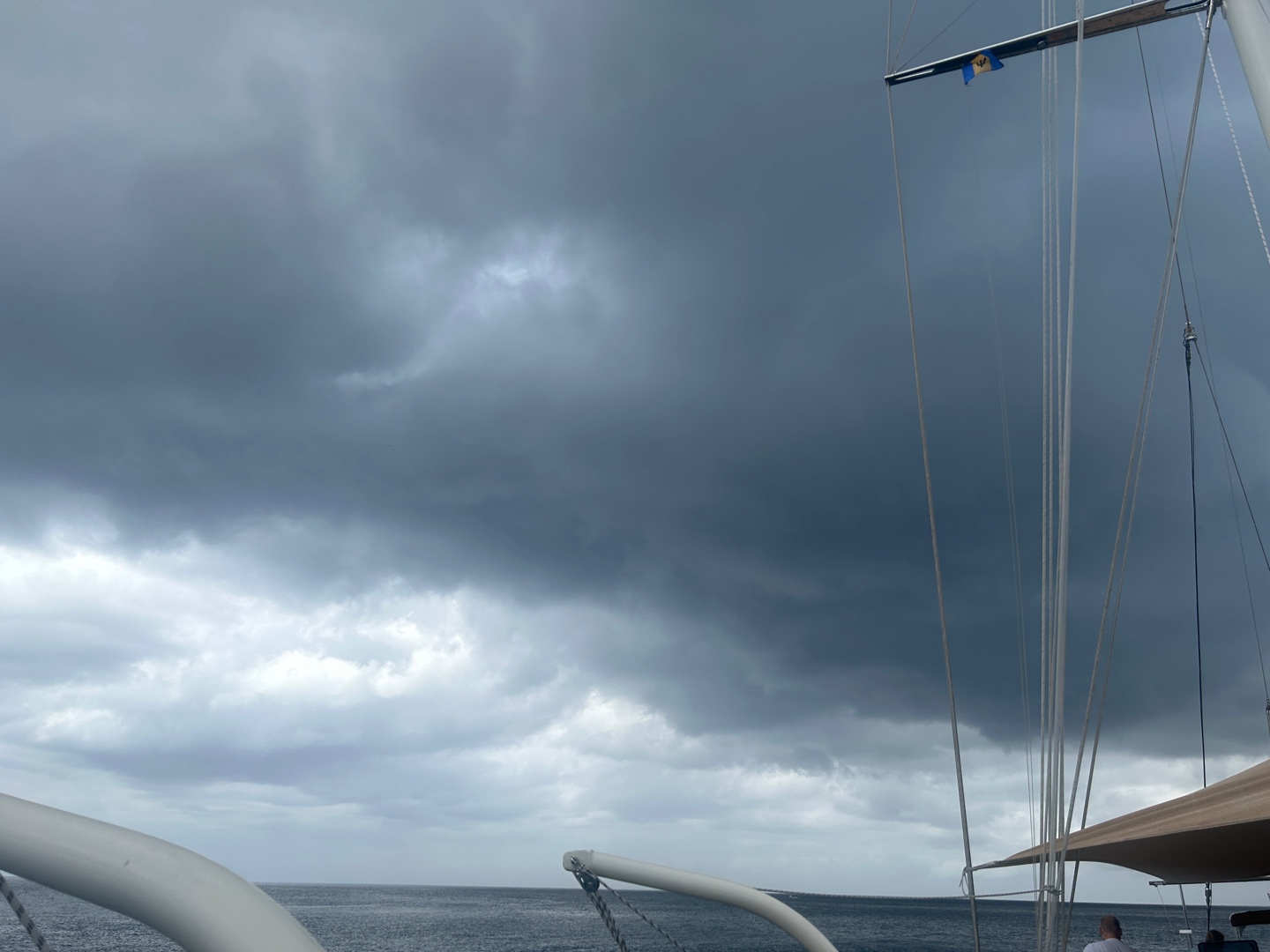 Today was truly a great day when Barbados pulled out her best aquatic tricks for ussome good and bad. The morning started off for me at 6:30 when I joined Kackie, Ben, Cecily, and Benny for a morning dip off the side of the boat. We swam around and had some laughs while enjoying the calm morning sunrise before Ben, Nicole, and I grabbed our snorkel gear and hopped back in to do some free diving and snorkeling. We swam around observing the Parrot fish and other reef fish before I spotted something incredible. Out of the blue emerged one of the ocean’s most stunning creatures, known as a Spotted Eagle Ray, soaring through the water to grace us with its beauty. I quickly shouted to Ben and Nicole to come over which prompted Kackie and Cecily to jump back in to share this special moment with us. We watched in awe as this ray went along the reef, eating and relaxing before it swam away to start its day just as we were about to do.