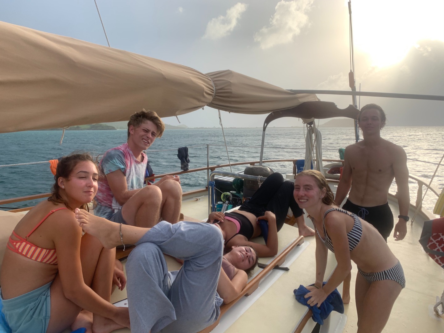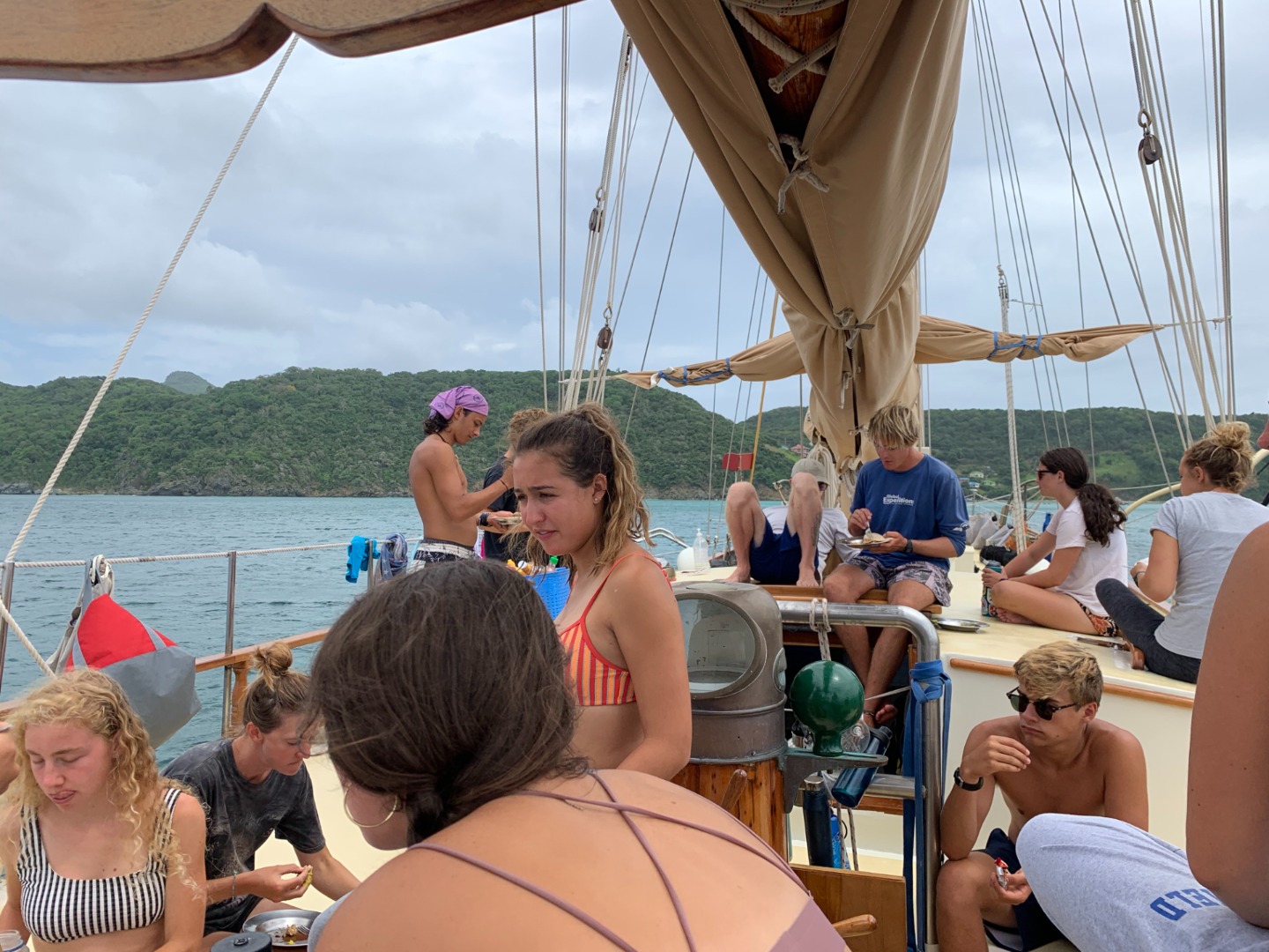 A change of pace was appreciated by everybody on ocean star. Although many students were awake this morning from 12-2 am completing papers that were due at 7 am, there was finally time to rest and breathe throughout the day without having to worry about any upcoming deadlines. I was not the only person who found themselves caught up on sleep after class, in between delicious meals, and after dives. Some students discussed some of the more important questions in life, such as whether they would rather be stuck in a room with Calum or stuck on an island with an 82-year-old whaler. The dive today was also very exciting for reef lovers, as they noticed the excellent health and biodiversity of the Canouan reefs. Divers found a very large stingray, spotted moray eels, and lionfishes. The highlight has to have been an encounter with possibly the most adorable fish in the ocean, a baby smooth trunkfish. It looks like a miniature soccer ball, with two large eyes and tiny fins. I was very tempted to capture it, name it Zac Jr, and raise it on my own.