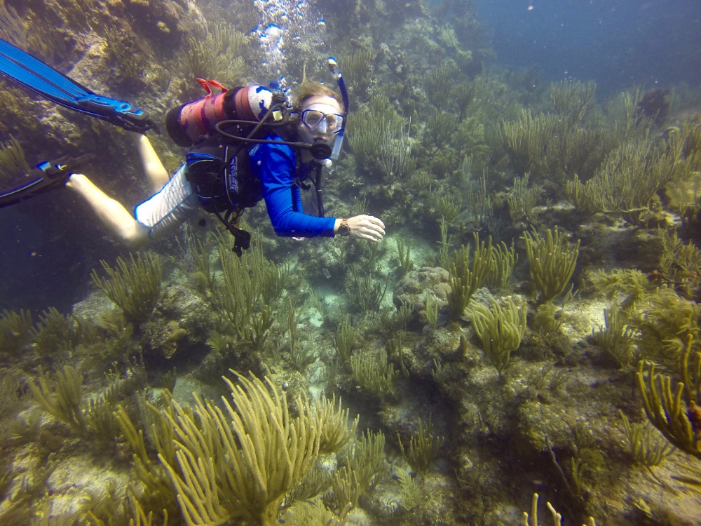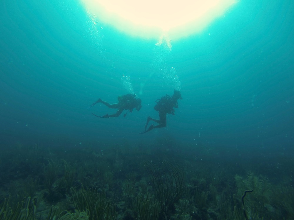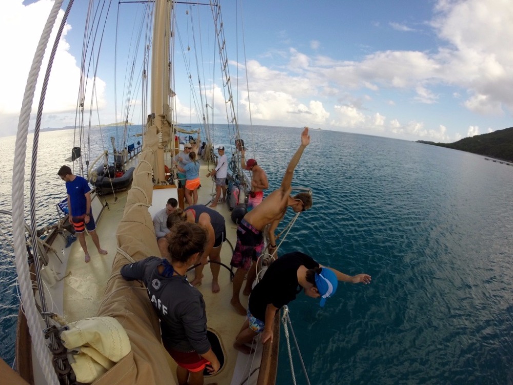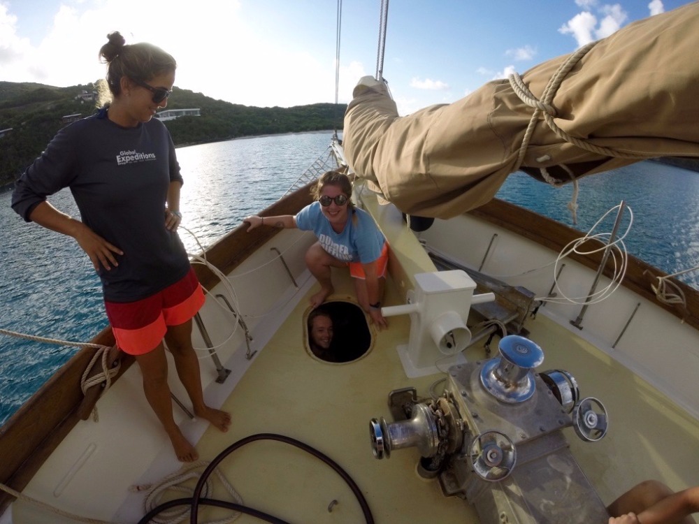 The focus of the day was diving, during which the PADI open water divers in training, along with the already certified divers, had the chance to explore the new dive site and fine-tune their diving skills. The weather was ideal for diving; the water was calm and warm, perfect for skills practice. There was time to explore the beautiful reef, where they saw dozens of fish and marine fauna, including two big nurse sharks. Some of the crew also had the chance to learn how to drive one of the dinghies while the other members of the crew were diving. The end of the day was met with ocean showers and chicken Alfredo with salad and garlic bread, followed by the first academic class of the semester with the Captain.