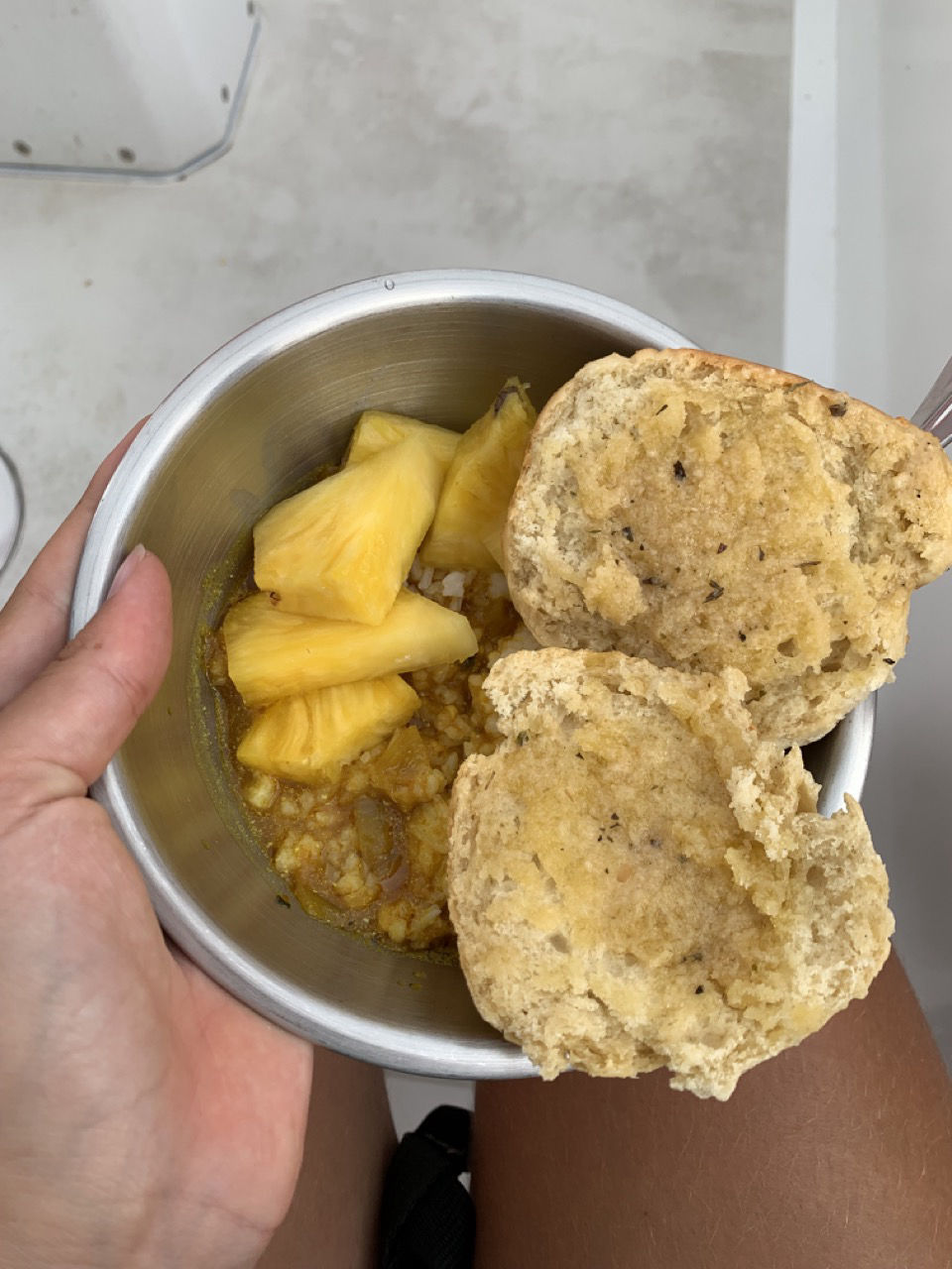 The next time we were up was lunch. As we were doing one of the daily count-offs, there was a massive series of dark clouds just upwind of us, which looked like rain. Having been sailing around the equator for a few weeks now, having some rain and a cool breeze seemed very exciting. One of the theories of how this rain was caused is a conspiracy theory that whenever someone makes soup onboard, rain and cold weather are never far behind. There are lots of benefits to rain, but the best is having the perfect equilibrium where it is filling your bowl as fast as you can eat the soup… endless, unlimited, infinite soup! However, the negatives are to avoid the freshly baked bread from becoming soggy. You have to stop eating and start inhaling. The other problem with big raindrops is that they hit the soup in the unlimited soup bowl is the major splashback. Soup rain is the arch nemesis of the white deck paint.