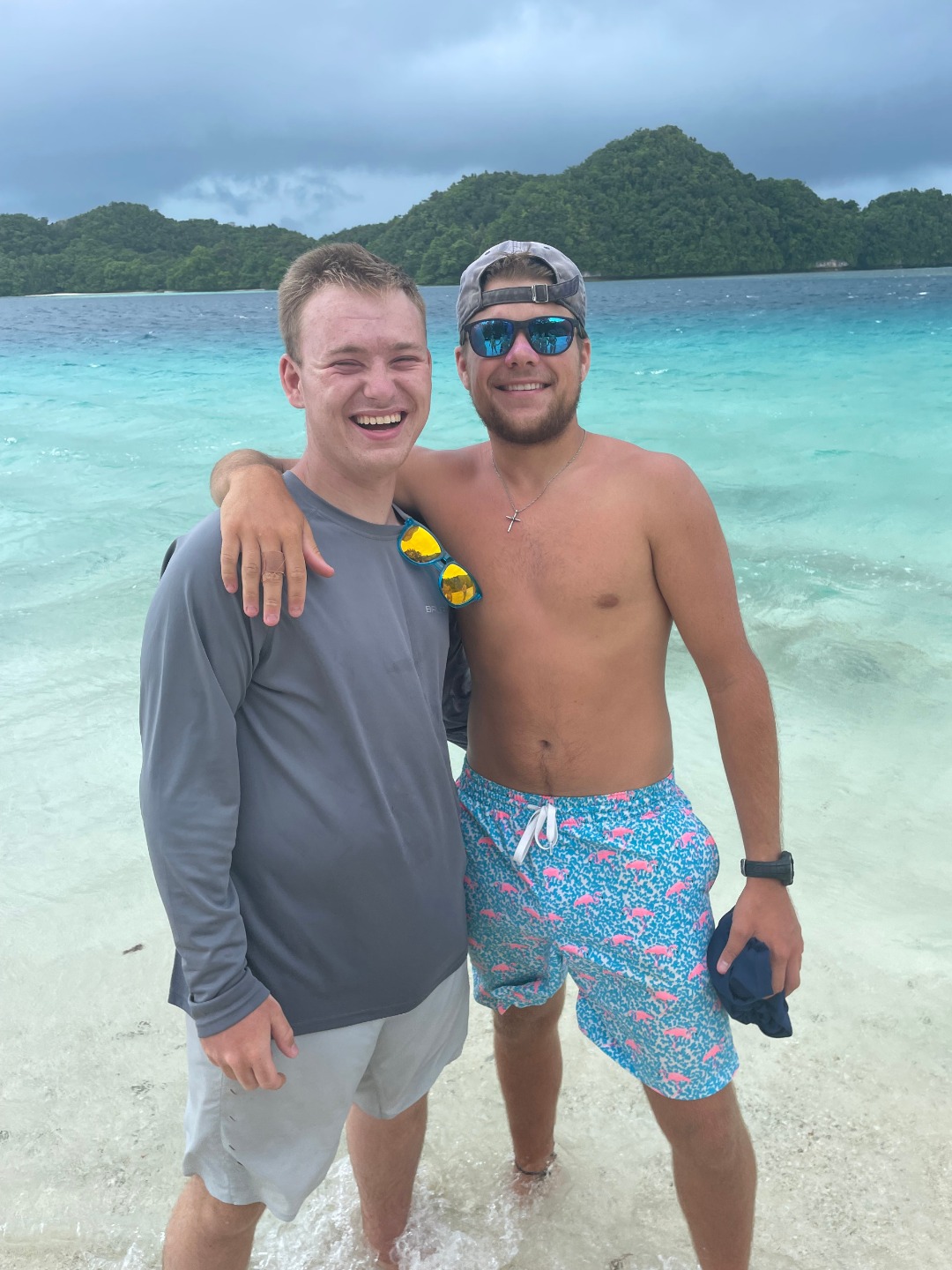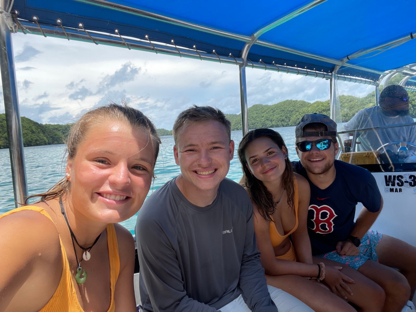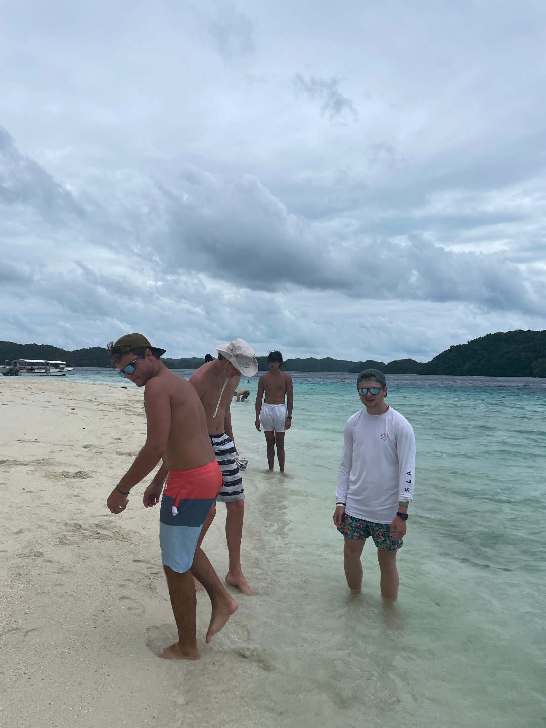Today all of the students went on the Rock Islands tour. First, we went to the saltwater jellyfish lake. We all swam with the jellyfish. Emma even kissed some. The jellyfish lakes formed when the ocean levels fell, and a lake was left in the middle of an underwater landmass. The widely accepted theory of how the jellyfish got into the lake is that jellyfish polyps (baby jellyfish) were brought there by birds. The absence of predators meant that their stingers atrophied over time. A lot of the students were really excited because the jellyfish lakes are one of Palau’s natural wonders, and this same tour had been canceled earlier in the week.