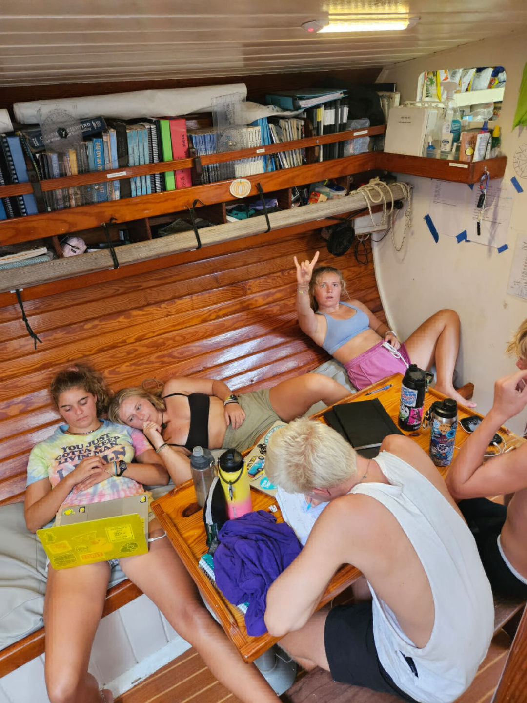 After Marine Biology, most chose to study for their upcoming navigation exam for Freddie’s seamanship class, while others opted for some downtime and watching Divergent. After Heather got back from provisioning, many were excited to find some ingredients for their favorite Thanksgiving dessert (and some cake supplies for Allie K’s birthday), so I believe some baking is in the works for the rest of the evening. Dinner ended with a debate on the shape that cakes can take. Most came to the conclusion that cakes can be in any shape, while some took the more serious route, classifying what is or isn’t a cake based on the ingredients, while some argued that a cake must be cooked in a round pan.