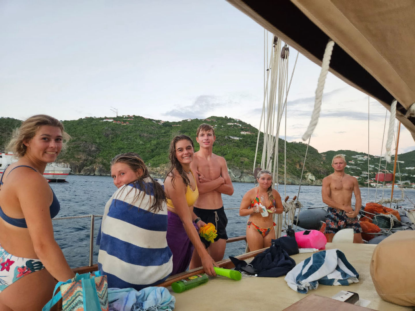Hey everyone! Your favorite special guest bloggers are back! We would like to give a cheeky little update about the yachts next to which we are anchored. While we were putting provisions away, Megaladon called us on deck to see another big yacht pass by us. The flag on the bow was red, white, and blue, representing a famous designer…Tommy Hilfiger! His vessel was quite nice but didn’t stand a chance against Mr. Whatsapp’s CEO. Moonrise and Nebula are still the coolest boats (after O- Mama, of course) in the anchorage.