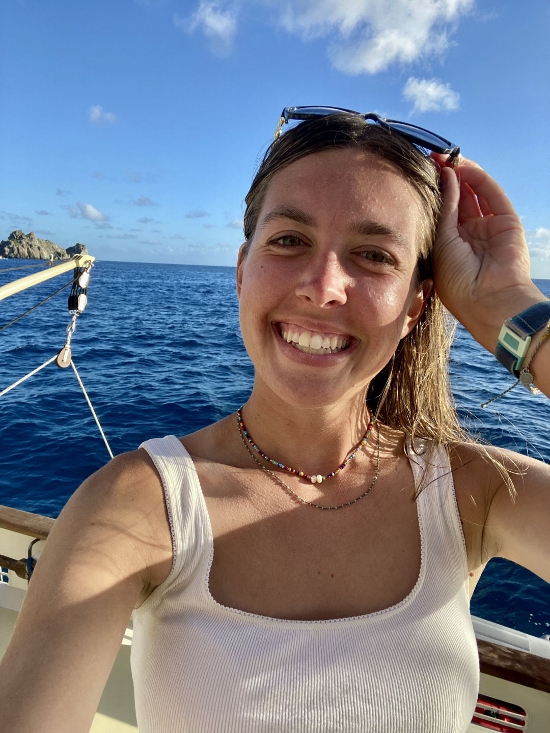 Today we arrived at Saint Barths! We are surrounded by super yachts and fancy sailboats! The views are so beautiful, and I wish I could say the stars this morning were beautiful, but all I saw were clouds : (. We were woken up to a beautiful and delicious breakfast made by our chefs today, and yet again, I always go back for 3rds. After breakfast, we had class. For me, seamanship was especially confusing today, and I think it was the same for others (but we’re trying!). After, we had boat to bed and a relaxing afternoon. Overall it was a great day, and everyone sends love home. All the best!