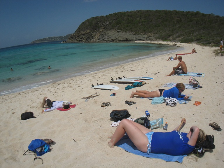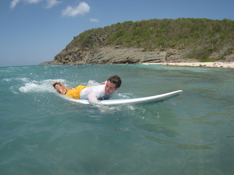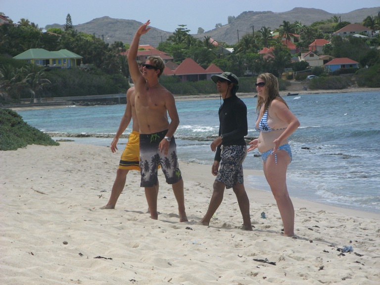 Today, everyone got a chance to experience the surfing scene that St Barths had to offer. We rented three surfboards and headed to a beach on the other side of the island, right next to the airport. Some of the crew had previous surfing experience, but even those brand new to the sport got a nice taste of what surfing life is about. The waves were not huge, which made them great to learn on. The surf died down in the afternoon, and people resorted to lounging on the beach and playing a few games of “bocce rock” (since we had no bocce balls with us). The sun exhausted everyone by about 3 pm, and we began trips back to Gustavia Harbour, where we were docked. Dinner followed showers, and we had a night of MTE class after clean-up. Another beautiful night in St Barths.