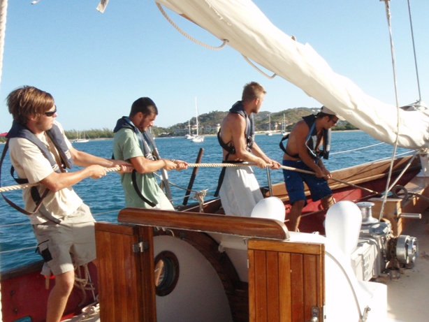 Today was a good day. This morning, we set sail immediately after a breakfast of porridge. Sailing out of Rodney Bay, we were expecting the wind to freshen and the seas to pick up, and although we did have a well-formed groundswell, the winds stayed at a nice 20kts. We had an extremely comfortable sail over the 25nm or so between St Lucia and Martinique. During the voyage, our sail plan was such that we could lash the wheel and steer by trimming the sails, a unique and extremely educational experience. On the way into Grand Anse d’Artlet, we decided as a crew that we would prefer to anchor in Fort de France and have a few hours of shore time, so we continued for five more nautical miles and into the large bay of Fort de France where we doused the sails, cleared in and went ashore for a few hours. This evening’s dinner was incredible: roast chicken with butternut squash and salad, which went down a treat, and this evening’s entertainment will be a Marine Biology lecture, which our party starter Kirsty will lead.
