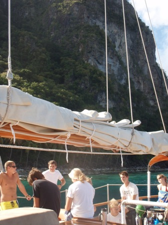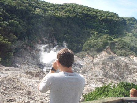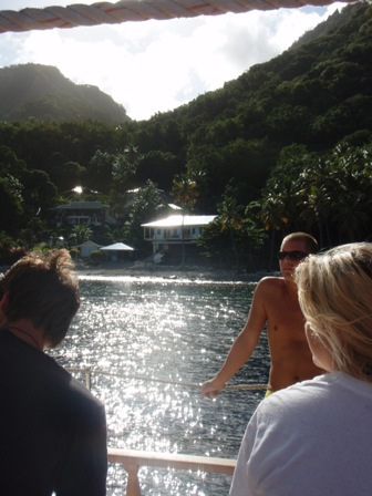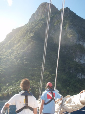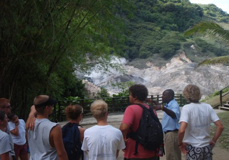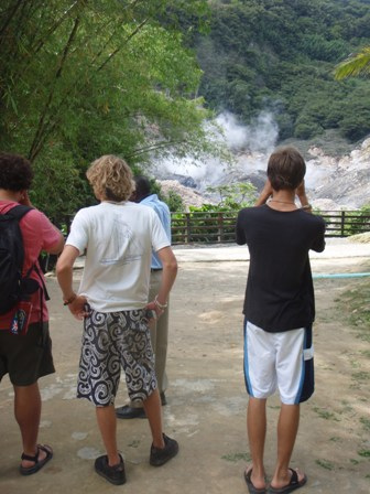 Watch three brought us into Saint Lucia this morning after a slightly eventful sail. It started out absolutely beautiful without a wave in sight, but quickly, the swells began to roll in and make the ride a bit rougher. We made it through into the harbor of Soufriere. Upon our arrival, we had a quick swim and then a morning of Boat Appreciation. After lunch, we met James, a local taxi driver, who gave us a wonderful tour of the Soufriere Botanical Gardens, the still-active volcano, and the local hot springs. The Botanical Gardens were slightly touristy but packed with beautiful tropical plants and flowers, along with its fair share of pasty white cruise ship goers. A quick ride took us to the top of some geological hot spots with a short walk back down. We ended our journey with a relaxing visit to the hot springs. This is the closest we’ll get to a freshwater bath for the rest of the trip. Our day came to an end, as usual, with a phenomenal shower and dinner time!