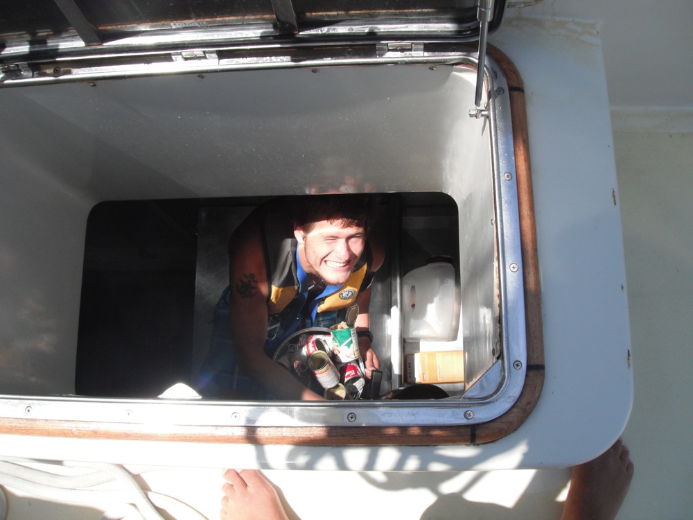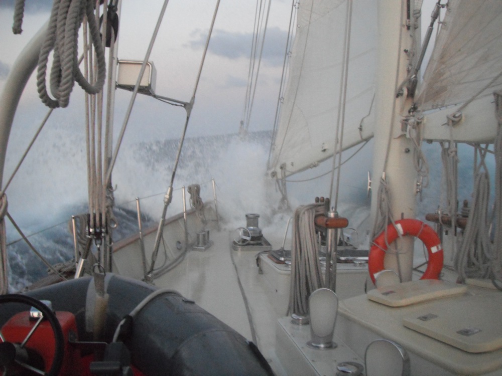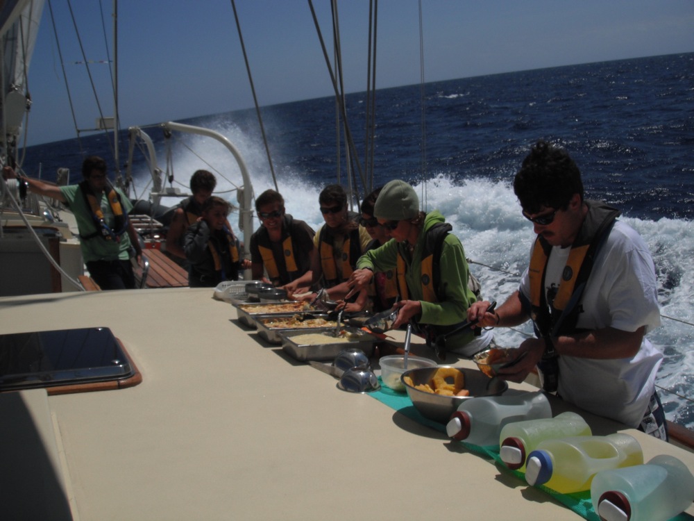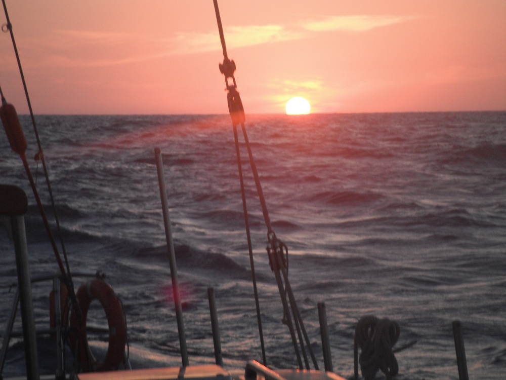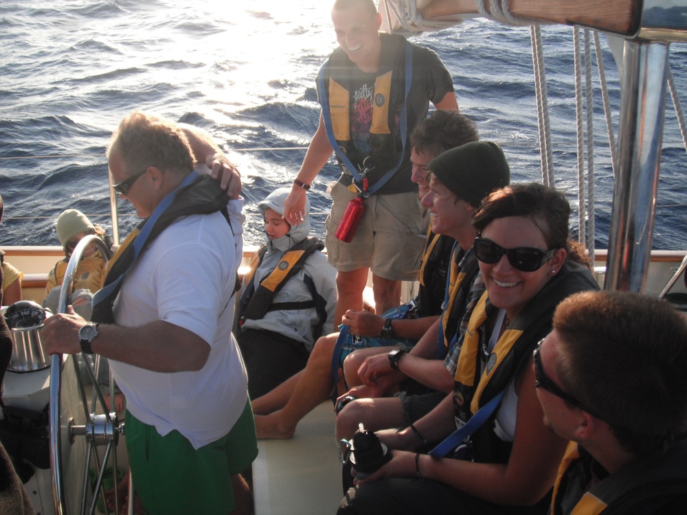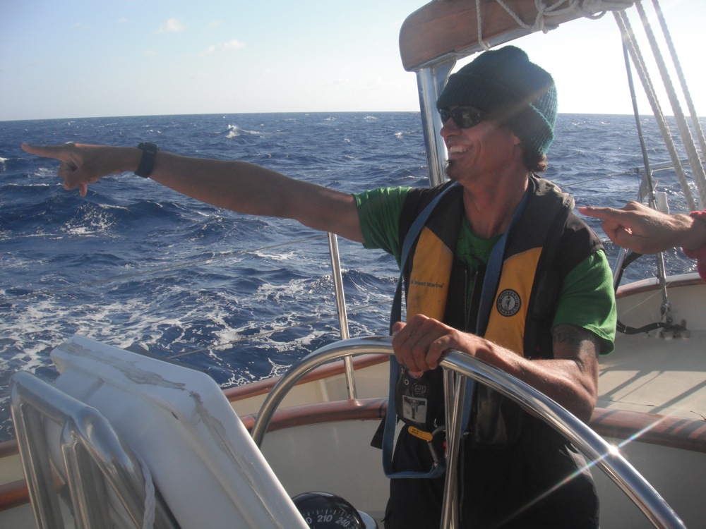 Our quiet night from last night was replaced by the entrance into the Gulf Stream. We experienced 20 kts of wind that was right on the nose and against the Gulf Stream. This created a VERY LARGE sea that came toppling over Argo’s bow. Our 8-9kt progress was slowed to 3-4kts, and our hope for an arrival in the evening was quickly dashed. Now we just hope we can make landfall by tomorrow sometime. Motor sailing: We made decent progress throughout the day and were able to have a squeeze in an MTE class for the professional skipper candidates we got in the last few of their presentations. All without a single person getting seasick. We’ve come a long way in the last two months. With the Gulf Steam also came a clear change in the weather. Shorts and T-shirts were replaced with foul-weather gear and winter hats. There were many complaints that we were heading the wrong way and that it was getting too cold! Night-time watches switched between telling riddles, playing mind games, and figuring out what people would most like to eat once they got back on shore. Key West must be close… They can smell it!