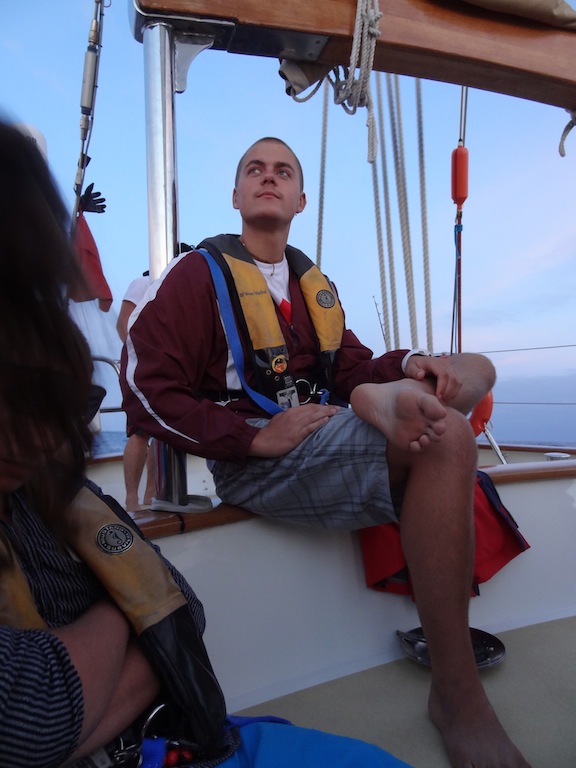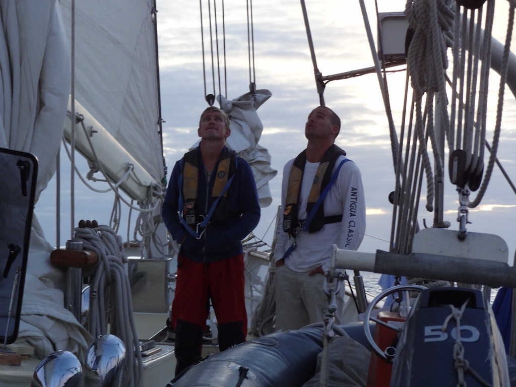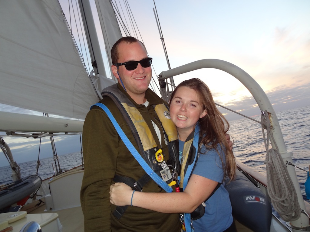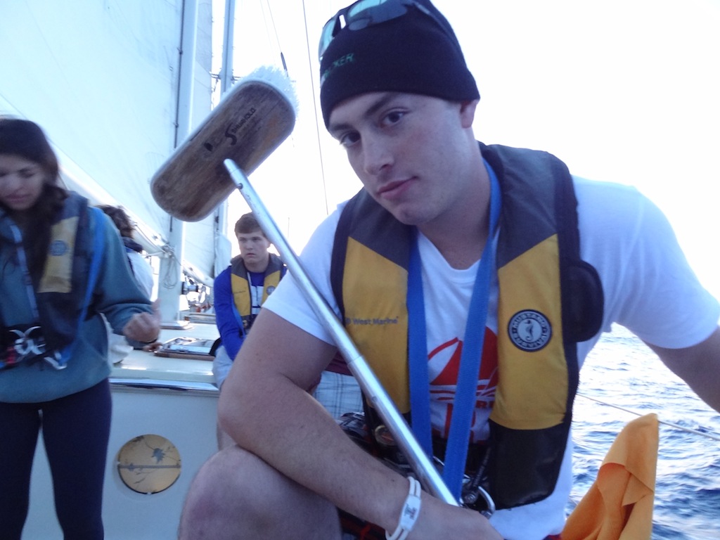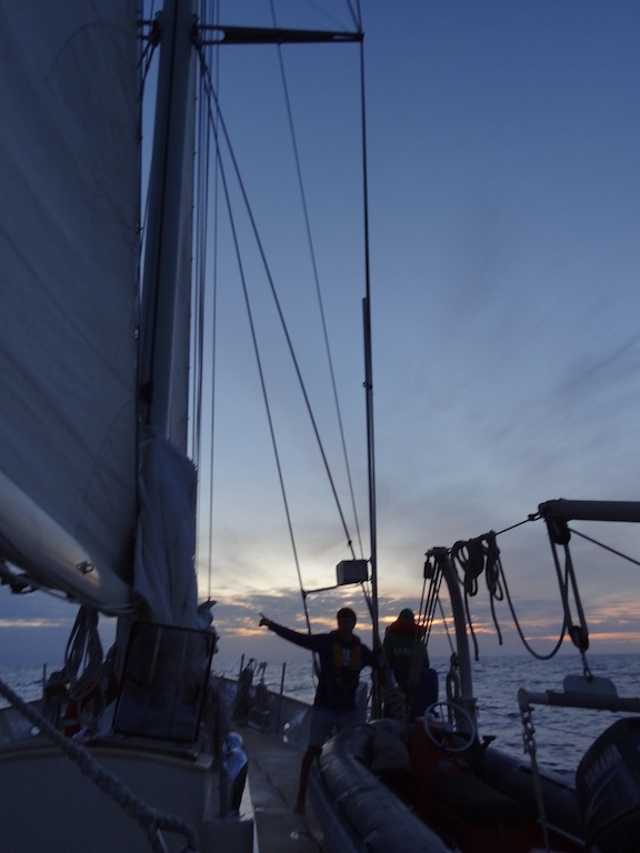 My day started off bright and early, minus the bright part, at 4 AM when I was awoken by Lilly for my watchcoming up the main companionway, I was greeted by probably the starriest night we’ve had so far on Argo. The watch team before us made sure we knew just how many shooting stars they had seen. For the next four hours, we sailed along with engines off, cruising at a solid 8 knots. Watch team Uno was then treated to a gorgeous sunrise, with absolutely no land in sight, before heading back to bed until lunch. After our delicious pesto grilled cheeses prepared by Alex, Biz, and Faloon, we had two classes, PSCT and Oceanography. After that came everyone’s favorite, Deck showers. Today’s shower was particularly hectic and cold and was accompanied by a great deal of squealing, and not all from the girls. Before dinner, in keeping with Argo tradition, I, as the skipper, posed a question to the group during the squeeze. Today’s question asked where you saw the person sitting to the left of you in ten years. Answers ranged from specific to vague, the serious to the hysterical, and left us all laughing. As I write this, I’m sitting in the chart house. Out of the portholes, I can see my fellow shipmates scrubbing the deck and washing the dishes, just like we’ve been doing for the past 60 days. It seems weird that I’ve only been here for two months because it feels like so much longer. With the 2/3 mark upon us, I think everyone is starting to realize how much we will miss Argo when we are gone. I hope everyone is doing well at home, especially those getting dumped on by snow.