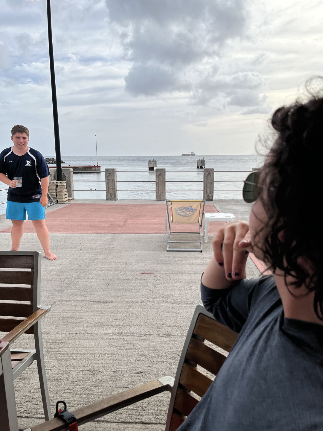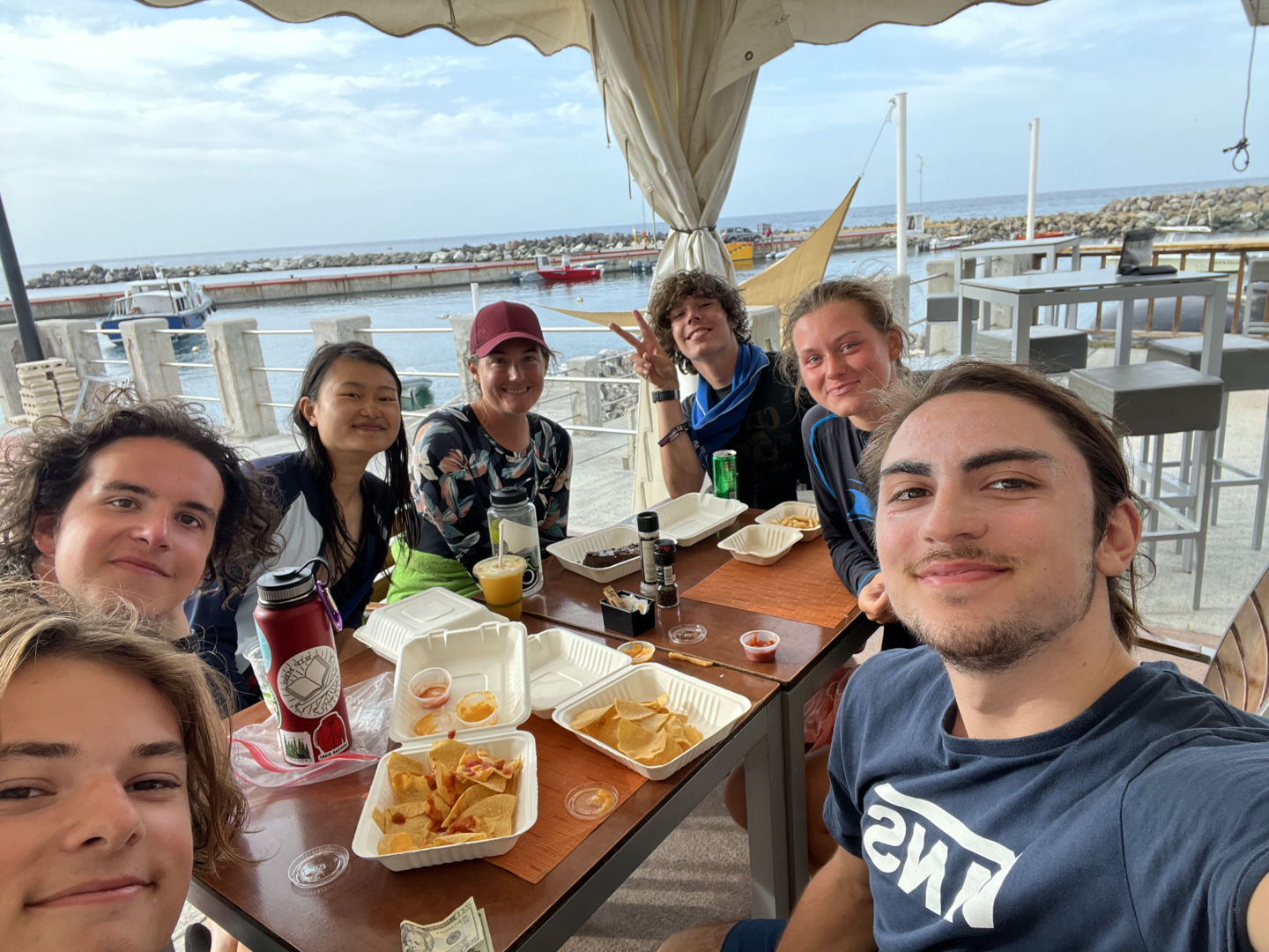 After diving for a couple of hours, we made our way to land once again. This time we had time to walk by the dock where there was a small restaurant with a specialty in chocolate cake. I personally didn’t buy one but did not need to. Everyone offered me food and sips of their smoothies and sodas. Drinking or eating something so sweet is almost an overload of neurotransmitters and taste buds going off, even if it’s only been 13 days. Amanda, Oliver, Miranda, Skylar, Daniel, Oliver, and Kristy were all hanging out, and together we ate and enjoyed the rest of our afternoon.