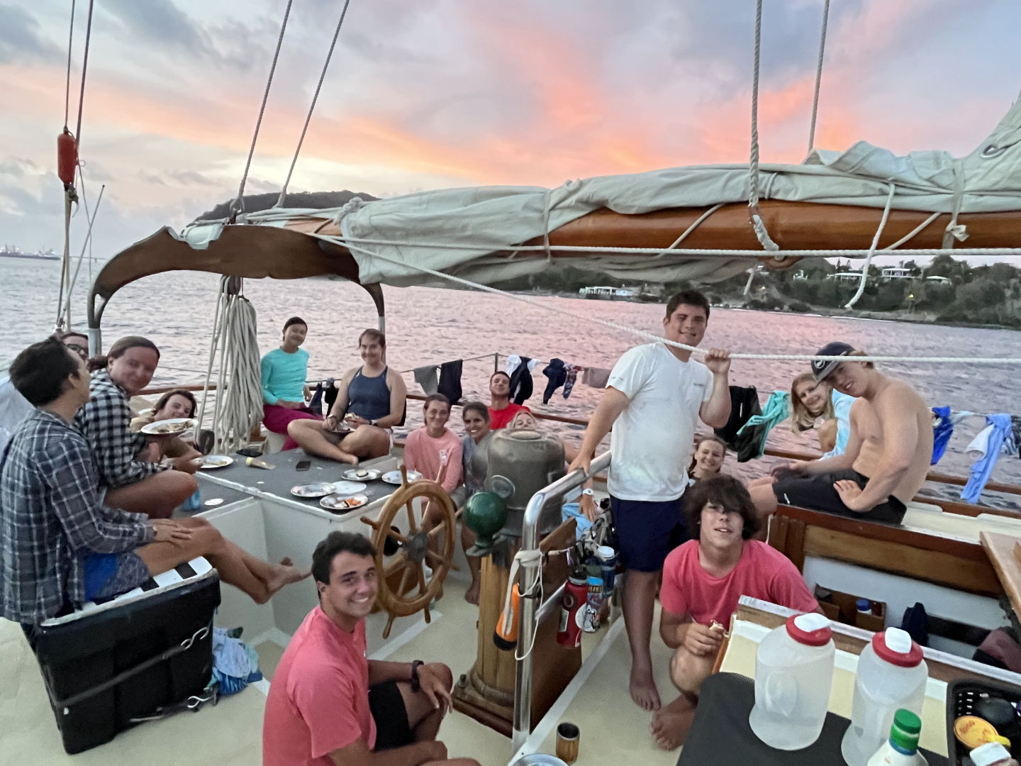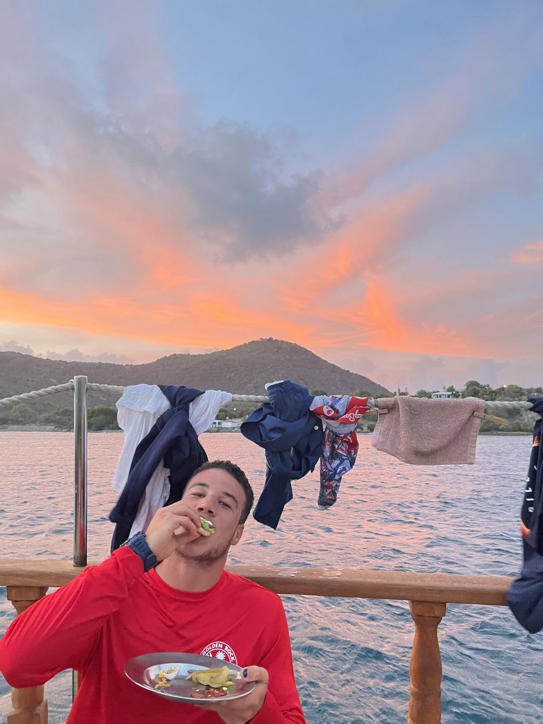 After, we came back to the boat and took showers in the ocean. It was a perfect temperature, and as I came up to the deck, the wind would dry me. The cooks had a special treat of hamburgers today. I helped by playing some Reggeaton and organizing a fluid dinner.