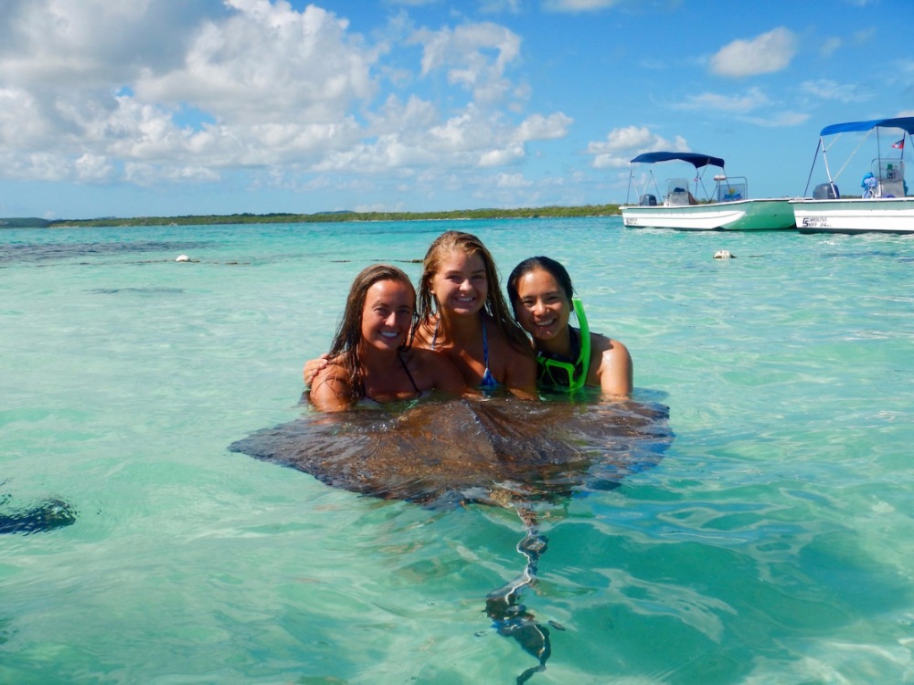 Today, we woke up in English Harbor, one of the nicest harbors we’ve visited yet. After breakfast, we had our seamanship class and learned how to do a running fix while navigating, which is useful when your GPS stops working. Then we went to a place called Stingray City for our ‘Tor-venture,’ where we had the amazing experience of swimming with dozens of stingrays that are accustomed to interacting with people, and we all took turns feeding and taking pictures with those fascinating creatures. We then returned to Ocean Star and began our SLD Amazing Race scavenger hunt, which involved eight teams with two people in each team. We had to look for our clues, which were scattered around English Harbor. The winning team was awarded candy and soda. After our scavenger hunt, we had some shore time, and then we had the oceanography quiz that we all surely crushed. The night ended with a fireworks show courtesy of a wedding party nearby. We cannot believe it is already day 56, and we are making sure to live every day to the fullest, a feat that we accomplished today.