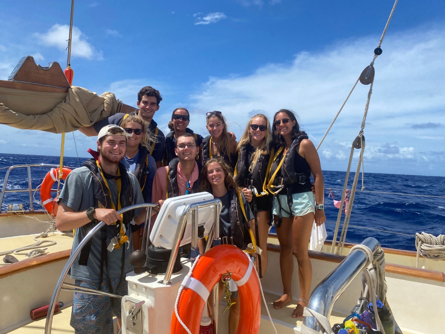 For those of us who weren’t on watch this morning, it was grind-time. As you may know, the rest of the passage is going to be quite a busy 10/11 days. Today, we had our third Marine Biology exam, tomorrow we have an Oceanography quiz, and on Sunday, we have our big NavMaster exam. There have been charts, Bretton Plotters, and dividers littered all over the salon as we try to master dead reckonings, running fixes, compass errors, and everything else that Elle and Lolo have been teaching us over the last month. This exam is pretty daunting, so all of us have been pretty dialed into that in any free moment that we’ve had. After this, focus for a lot of us is going to be switched to something called a student-led passage. Tim announced the other day that for the last 36 – 48 hours, students are going to be making all (or most) of the calls on Argo. During leadership class, whoever decides to run will make a pitch for one of the four positions. It is between chief mate, navigator, engineer, and skipper. Chief mate will be a student who is running the show on deck – making sure that we are on course, the sails are happy when to raise and drop sails, and more. The navigator will help to navigate us through the notoriously reefy areas around Fiji. The engineer will spend a lot of time in the engine room making sure that everything is happening as it should and to be turning on and off all of the machines accordingly. Skipper seems to be the most attractive role as there is a large number of students running for this one. For this, we essentially work alongside the captain on all things Argo. We collaborate with the engineer, first mate, and navigator to make sure that everything is going smoothly and according to plan. There are even rumors of the student skipper docking Argo in Fiji if the conditions are right. Anyways, the rest of the passage is going to fly by in a heartbeat.