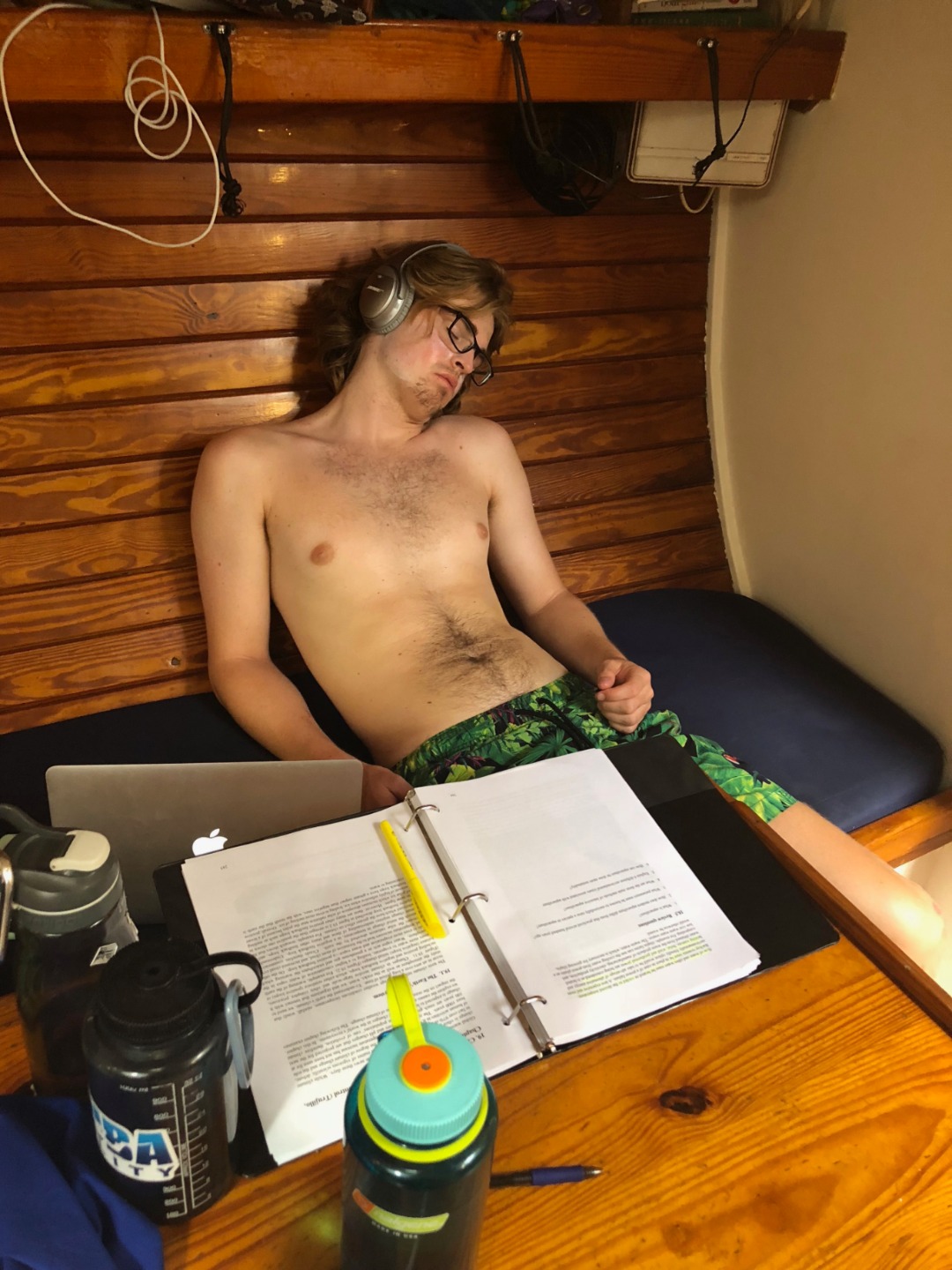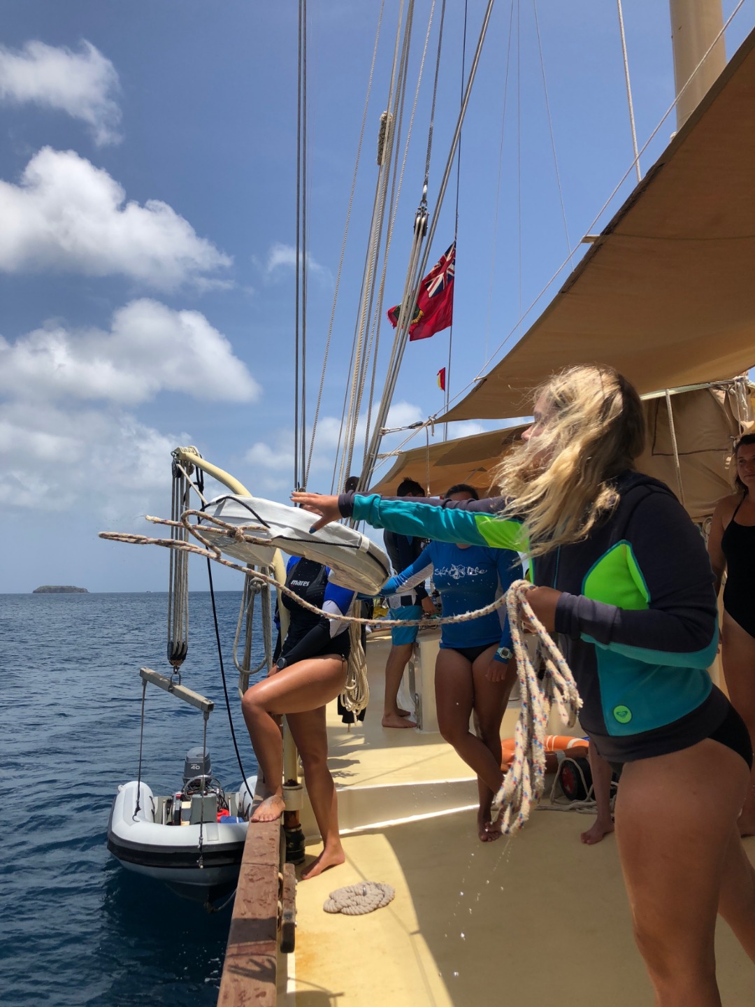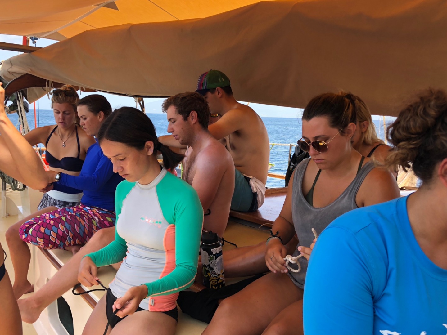 The crew was divided into two – rescue divers and the others. The six of us that remained on deck got the luxury of a very rare chill day, giving us an opportunity to get a head start on school assignments and watch Napoleon Dynamite. The rescue divers had their hands full with preliminary drills, knowledge reviews, and having to save Steph and Amy in a surprise-controlled emergency rescue.