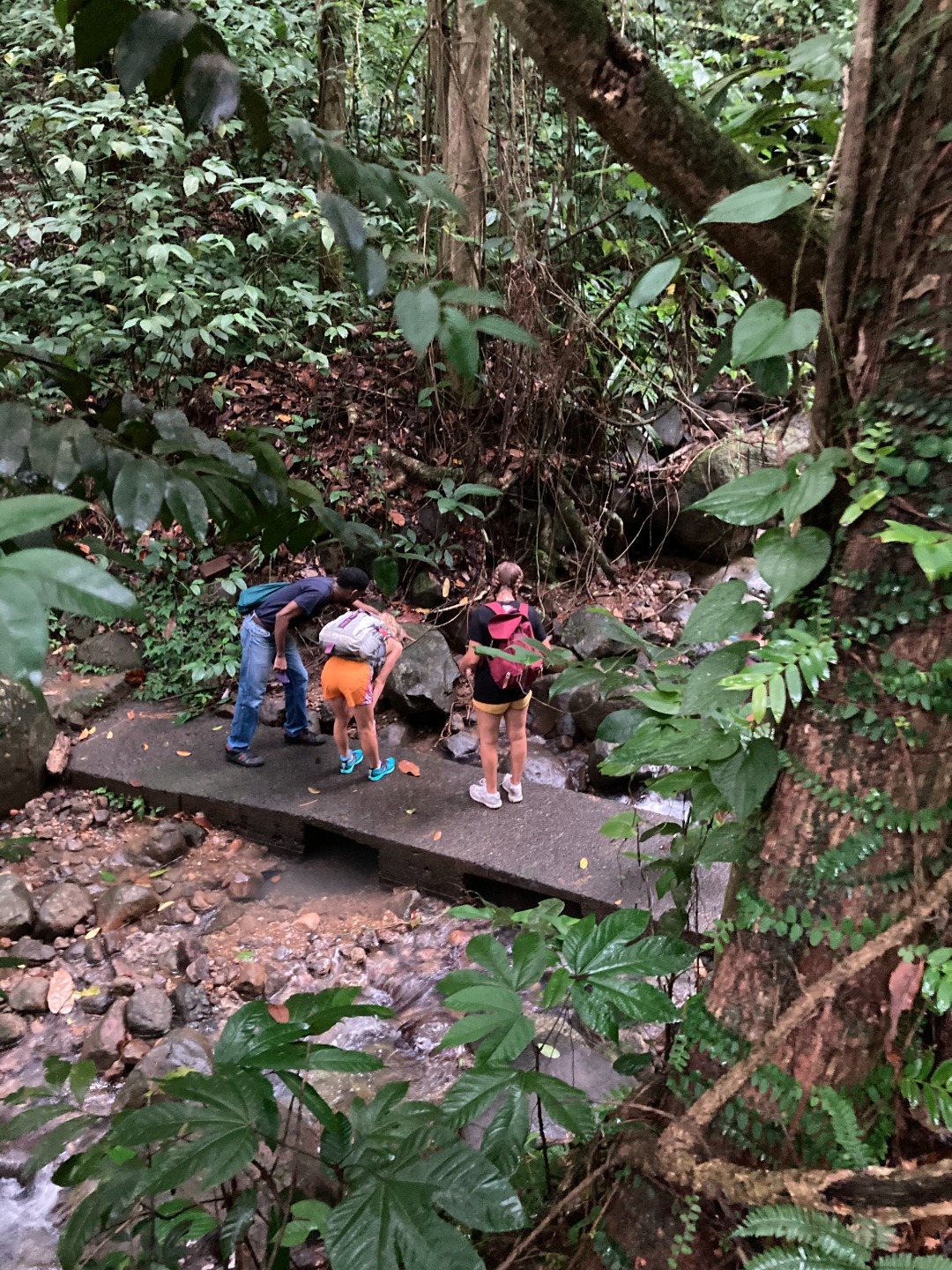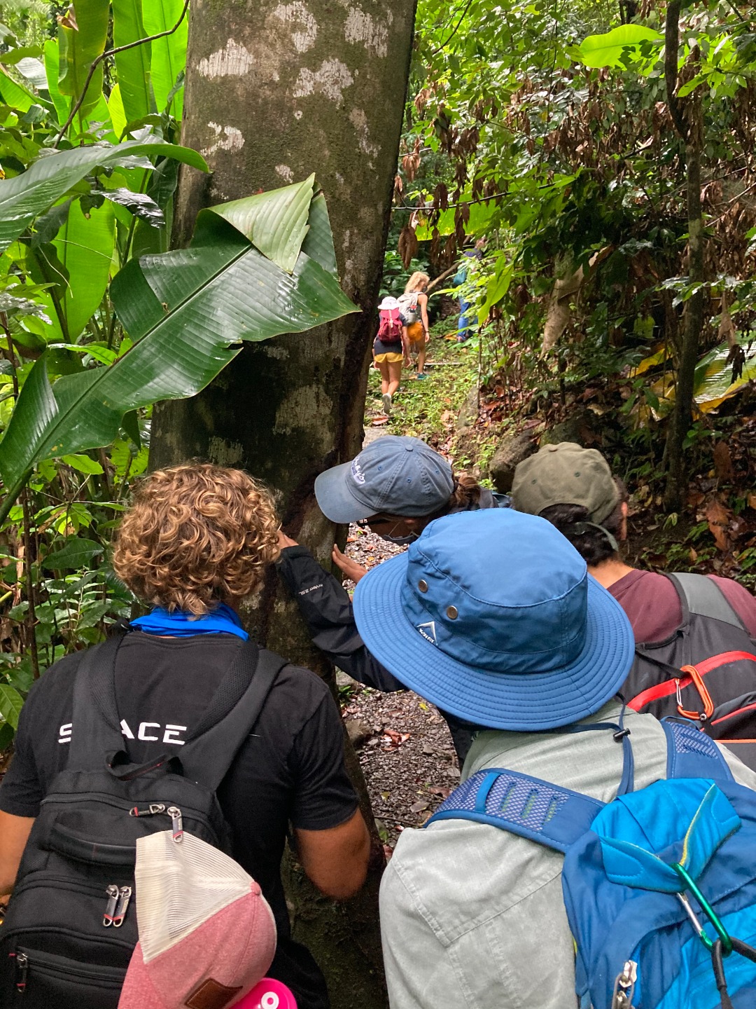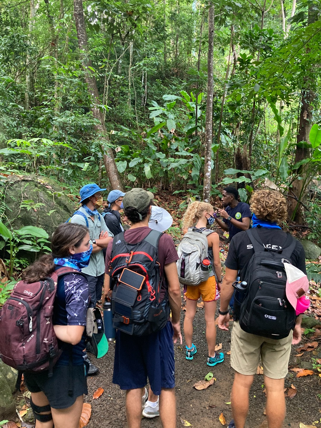 Tarantulas, hummingbirds, termites, trees, more trees, rain, and more rain…. that pretty much sums up our day. This morning we woke up bright and early for our Rainforest Adventure. Isa, Will, and Adelaide made some yummy french toast, and we packed up our lunches for the day. We then got into the dinghies and headed to shore, where we were met by James and Jamal, our 2 taxi drivers. Once at the rainforest, we split up into two groups and began our “hike” or, as some people on this boat would call it, “stroll.” In my group (Me, Isa, Chief, Jodie, Mike, Luke, and Ash), we thoroughly enjoyed our talkative tour guide, Junior. He told us all about the rainforest and what lives there and the history of St. Lucia, and what growing up and living on the island has been like for him. In the other group (Adelaide, Zoe, Isabel, Will, Ben, Kiara, Calum, and Sophie), they ate some termites for extra protein. They saw a tarantula which they were all pretty excited (and a little freaked out) about. Towards the end of the hike, it started pouring rain.. which was very fitting since we were in the rainforest. It was extremely lush green and smelled amazing during the downpour, a great way to end the adventure. Once we got back to the boat, where Riley, Xonel, Margeaux, and Steve were holding down the fort, we had some quiet study time. With only 20 days left, classes are wrapping up, and finals are upon us. Following a delicious dinner by Isa and her sous chefs of Arepas, chicken, and beans, we took a Marine Bio quiz. Now I am sitting here writing the blog and hearing about Steves day, which went like this…….