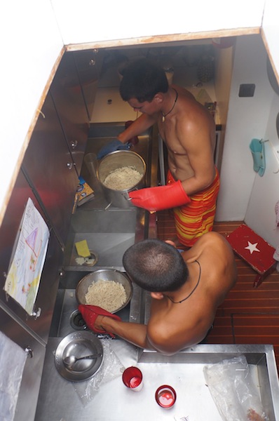 Meanwhile, Collin napped in the dinghy. Our rescue divers had another practice exercise today where Monika was maimed by a vicious pufferfish. Both Will and Jake performed marvelously… aside from losing Monika’s mask. After some mac and cheese, it was time for the fish ID quiz, which went swimmingly! Then came the Marine Bio final and then some time to let loose and blow off some steam before we buckled down for some more studying. Bret and Will cooked up a delicious shrimp stir fry for dinner – fire alarm free, then we had an MTE review “sesh.” Father Kris-tmas gave us an early Christmas present, which was no nighttime mooring ball watch, so we hit the books hard and studied into the night.