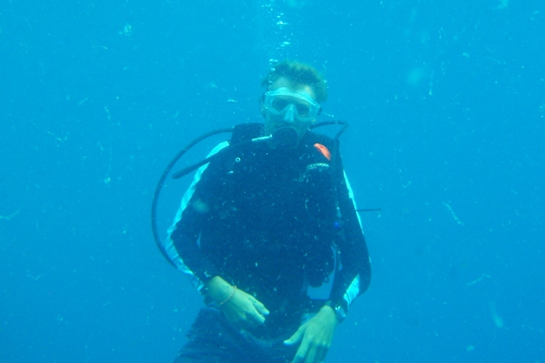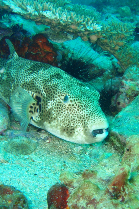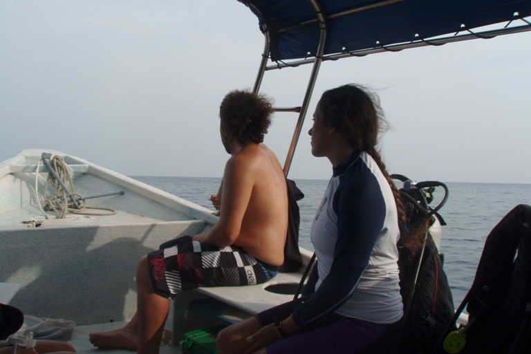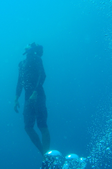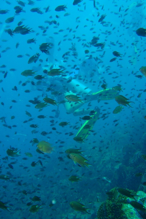 Today has been a great day underwater – unfortunately, it is one hour short! After breakfast, as we were preparing for class, the dive boat and captain pulled up alongside, an hour early, we thought. We soon discovered Malaysia was one hour ahead of Thailand, so we sprang to action and prepared for the dive. We were soon motoring across a flat, calm ocean towards Tokong Laut or the Pinnacles. Our driver took us on an exhilarating ride, skirting some narrow cuts in the rocks. Upon arrival at the dive site, we quickly dropped over the side and down onto the rock formation below. We were treated to sightings of baby nurse sharks, pufferfish, and many schools of fish. We circumnavigated the pinnacle with a maximum depth of 75ft. In places where the current was strongest, the fish life abounded. We surfaced and enjoyed another fast boat ride to Argo. Once back, we had our delayed MTE class and then shuttled ashore for lunch. My favorite treat was the Mars Shakes, which were even better than I had remembered 10 years ago! The shipmates all enjoyed lunch ashore and internet time. Mike and Leah spent some time under the boat working on Dive Master skills. They completed their equipment exchange with great skill. We have just had Mexican tortillas for dinner, and everyone is preparing for a night dive at Batu Nisan. There is hope for sightings of parrotfish in the nighttime cocoonanother great day on Argo.