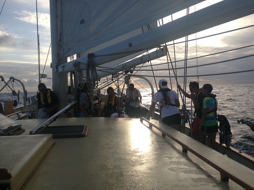 It’s been a beautiful sunny day underway to the Marquesas. The scheduling committee gave us the whole day off, so after lunch, we worked on charting, marine biology essays, and PSCT. Some took naps, and others read. Passage life has been great so far. Each watch has its own perks, sunset or sunrise, cereal watch, and snack watch. We are all very comfortable with each aspect of watch, helming, bow watch, and boat checks. We’ve averaged about 8 knots for the last couple of days! So we are making great progress, and maybe in the Marquesas a couple of days early if the wind stays with us. I much prefer sailing to motoring. It’s day 56 of our semester! By the time our 90 days are up, I still won’t be ready to leave Argo. The only thing that I am missing right now is my family, but I’ll see them soon enough! I hope everything is great back homeskip of the day, Jen M.