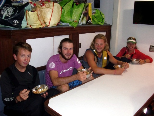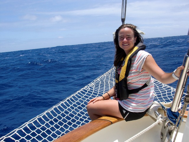 For some of us on the boat, the day started pretty great, with a beautiful sunrise and a yummy bowl of cereal. We woke up at 4 in the morning for our watch, and the four hours passed fairly quickly as we rotated between bow watch and helming and talking about basically everything that came to mind. The rest of the day was pretty much the same as the others while underway, except that a little rain greeted us in the afternoon, so we had a shower on deck as we got rained on. The days have passed quickly, and some of us are already starting to lose count of them. If the time passes quickly, it means you are having fun!