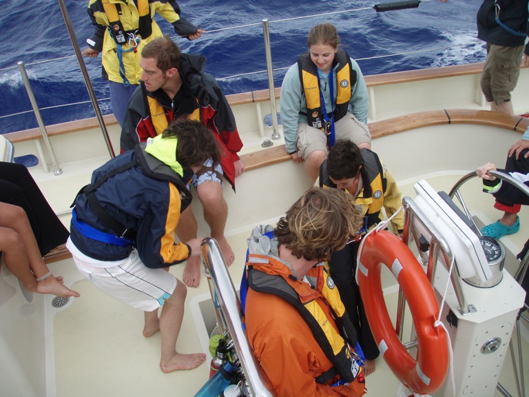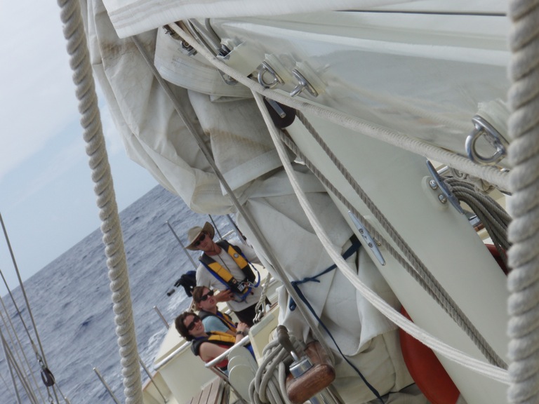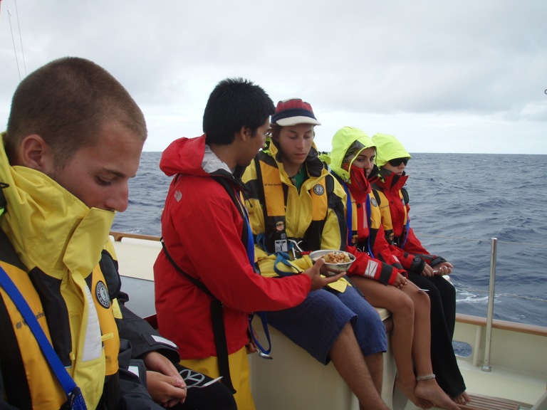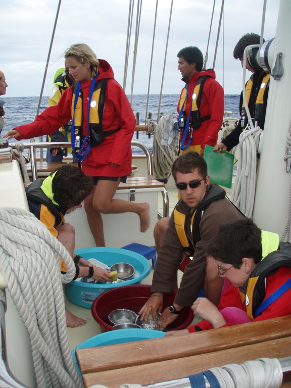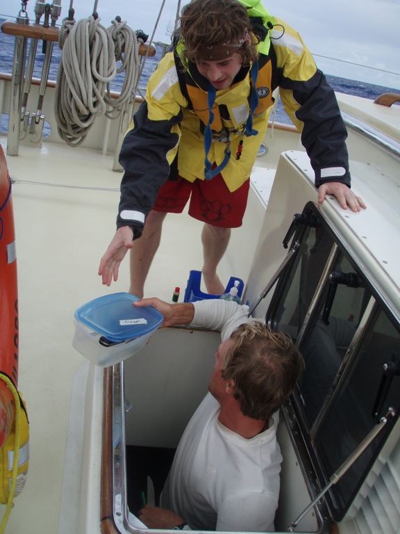 Today was another great day aboard Argo. Watch team 3 woke to a little rain in the morning, but by 10, the blue skies were back and stayed with us all day long. We had an OCE class where we learned about how light and sound waves travel through water. In MTE class, we learned about man overboard drills and how to anchor. The afternoon was spent either studying for our first OCB test or working on PSCT flash cards. Although it was a perfect day out, and we had our sails up, we continued to motor towards St. Helena in order to arrive before dark tomorrow night. Everyone is excited at the prospect of being able to go to shore and restock on the essential supplies (chocolate, coffee, and tea), as well as exploring the secluded island. Even though we are all looking forward to St. Helena, we’ve all grown fond of life at sea. I know we will all enjoy the chance to get out and stretch our legs, but at the same time, it is nice knowing that in a couple of days, we will be back in the open ocean. Today came to a perfect end with a delicious Sheppard’s Pie made by Sean and Averill, followed by an amazing sunset. Hope everyone is doing great back home! P.S. Gina, here’s your shout-out!