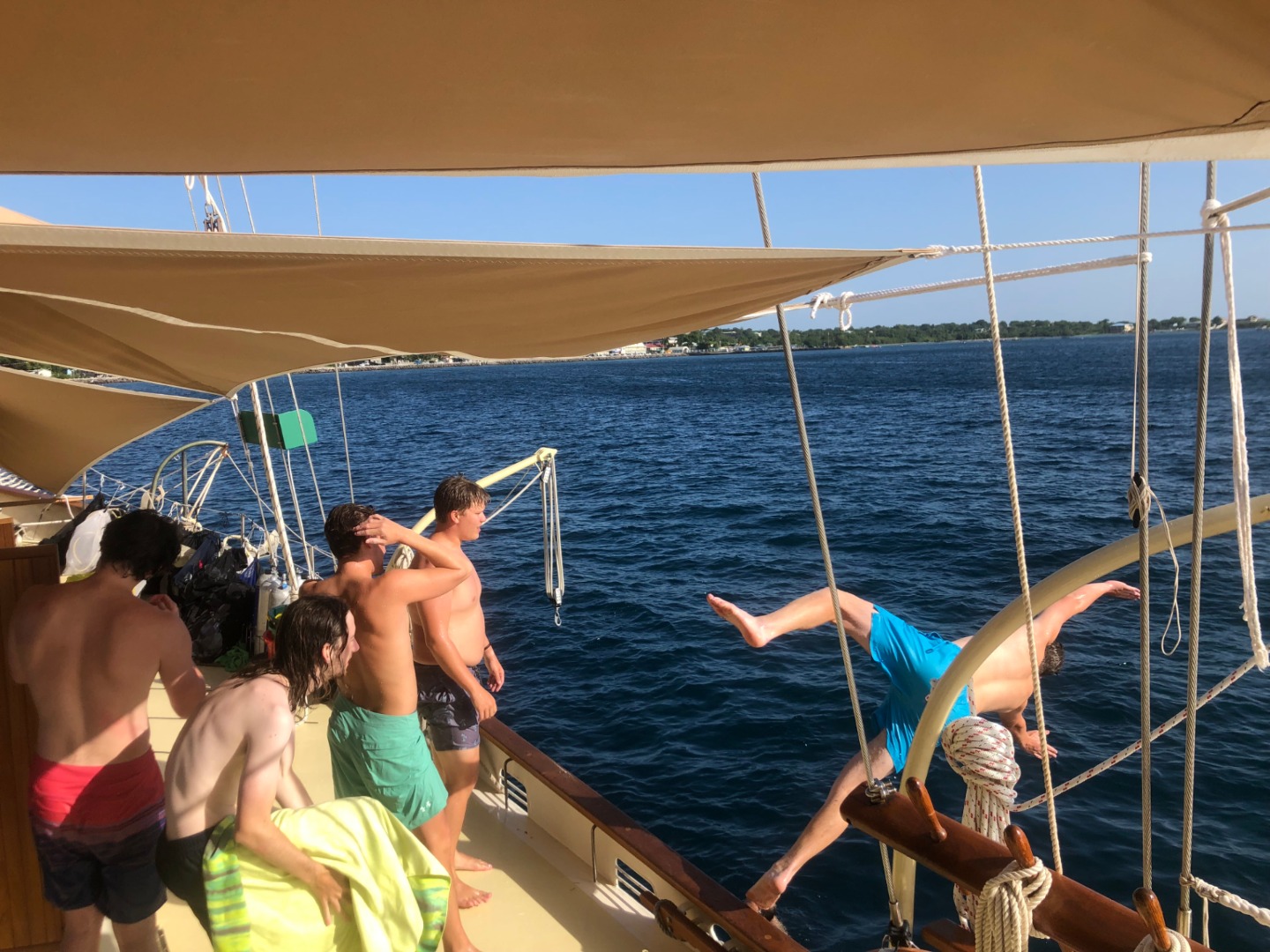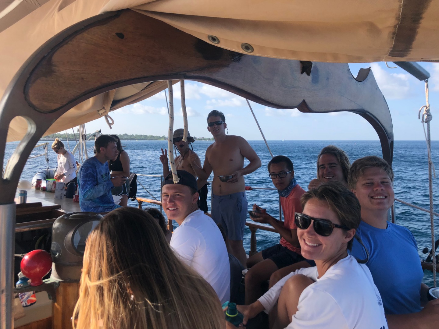 We also had our 2nd night out of the trip! We had amazing ribs and wings at a beach bar called Sunshines. We enjoyed a little delicious Caribbean rum and ice-cold beers as we all danced around and had a great night. It is always fun to change up the pace a little bit with our nights out. The dingy rides back to Ocean Star in the darkness were a fun maze of dodging buoys. What a fun day spent learning and enjoying life with friends.