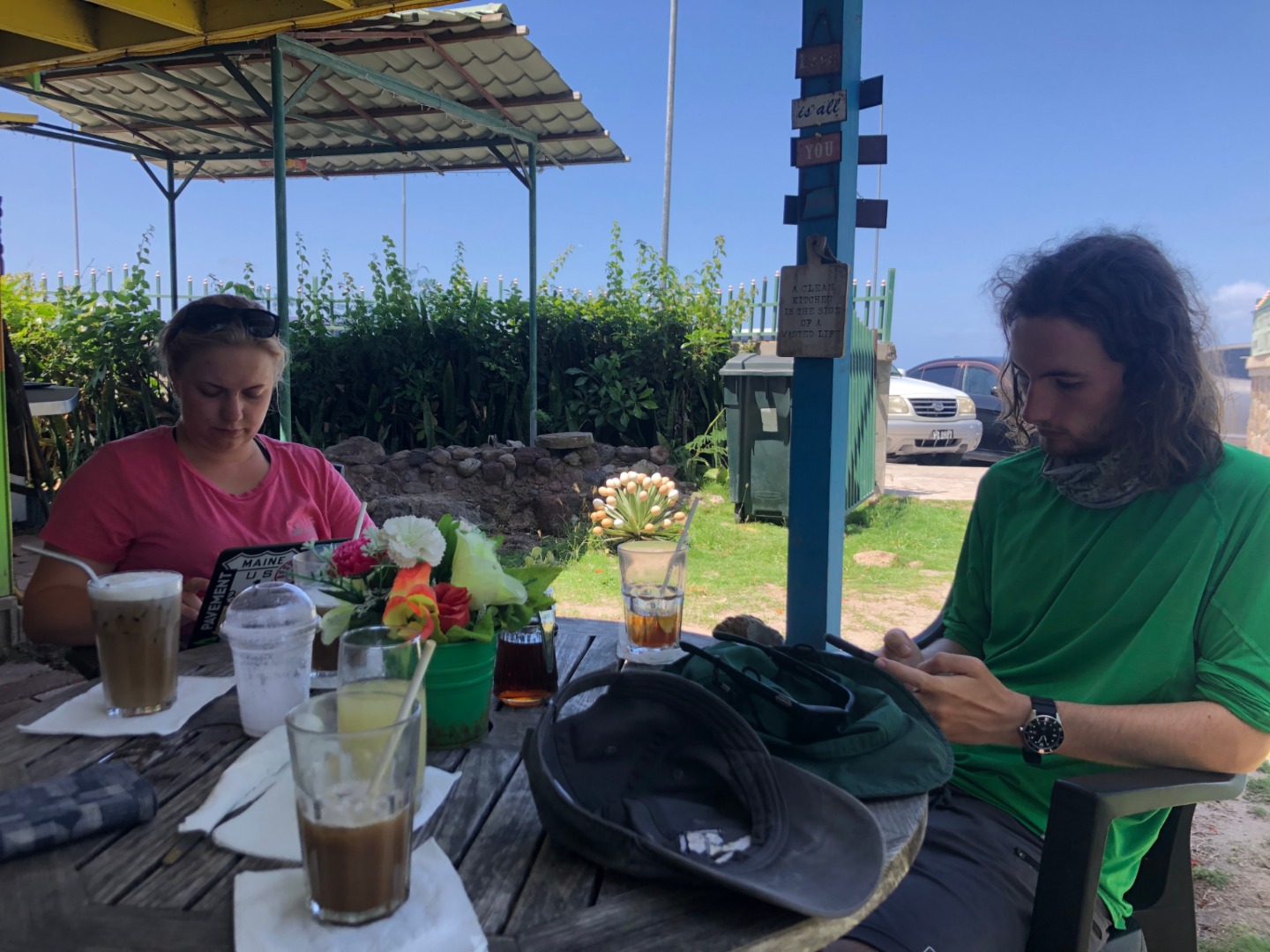 We got a couple of hours ashore to shop for some more snacks and enjoy a real iced coffee. Weve all acquired a new appreciation for flushing toilets and ice-cold drinks.