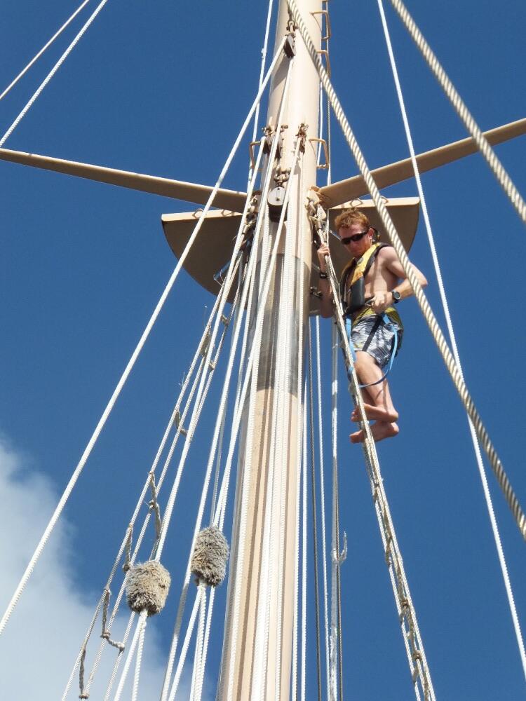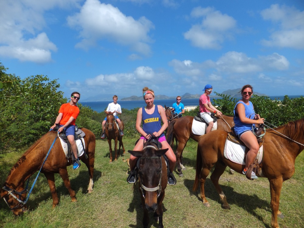 “Limin” is a purely Caribbean concept. The idea is to be very serious about taking it easy. The atmosphere in Nevis is incredibly conducive to a good “Lime”; an experienced “Limer” will start pretty early in the day, finding a suitable spot. The best spot is in public, so you can greet friends and make new ones, and it is probably in the shade. A setup like this will have you well on your way to a day spent busily doing not much but saying hi, dancing to any available music, and having a good time. The Ocean Star crew are not experienced “Limers,” however, so they didn’t get a chance to start their “Lime” until the afternoon. The morning was spent on an array of outdoor activities. Half of the group headed to Oualie Beach for a horseback ride that wandered from the sea up into the hills. The other half went with our hiking guide/taxi driver/reggae artist, Watusi, to hike to the water source for the island high up in the hills. The hike ended in a pool at the top of a waterfall. After the rigorous morning schedule, it was time for “Limin.” Some of the group found themselves in hot springs; others found a nice cafe to sit and sip the local fruit juices. This group of shipmates is well on their way to a full understanding of this aspect of Caribbean culture. Tonight, we’re off on a night sail to Montserrat to explore this island so recently ravaged by a volcanic eruption.