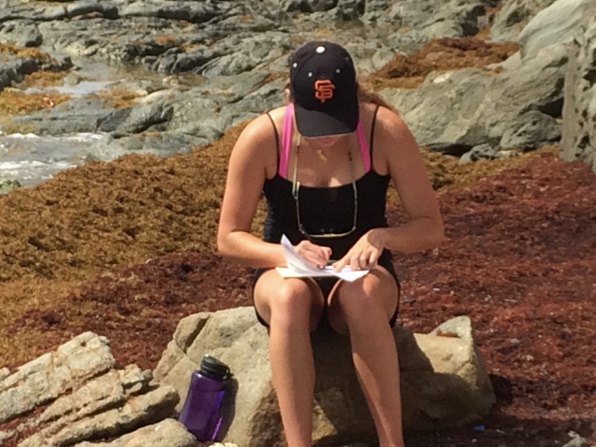 Today was a pretty eventful day! It all started with some delicious breakfast burritos, and then we set off to take a hike on Savannah Bay. The hike was really fun. For our Oceanography class, we had to observe two different sides of the island (windward and leeward) and differentiate between the two. The windward side was the coolest. There were lots of rocks, so we were able to see all the different types of organisms that live around them. I saw some incredible-looking sea urchins and also played around with some of the sea snails. After that, we were given a little free time to swim and relax on the beach, then headed back to the boat for lunch. We quickly cleaned up from lunch and got ready to sail back to West End. It was a really good sail with lots of jibing, but it took us quite some time to get to where we were headed. We then docked the boat, covered the sails, showered, and had a wonderful dinner of grouper and mashed potatoes! We have a couple more things to do tonight, one of them being our Oceanography class, and then we get to rest up for a full day of working to prepare for our sail across the Atlantic Ocean!