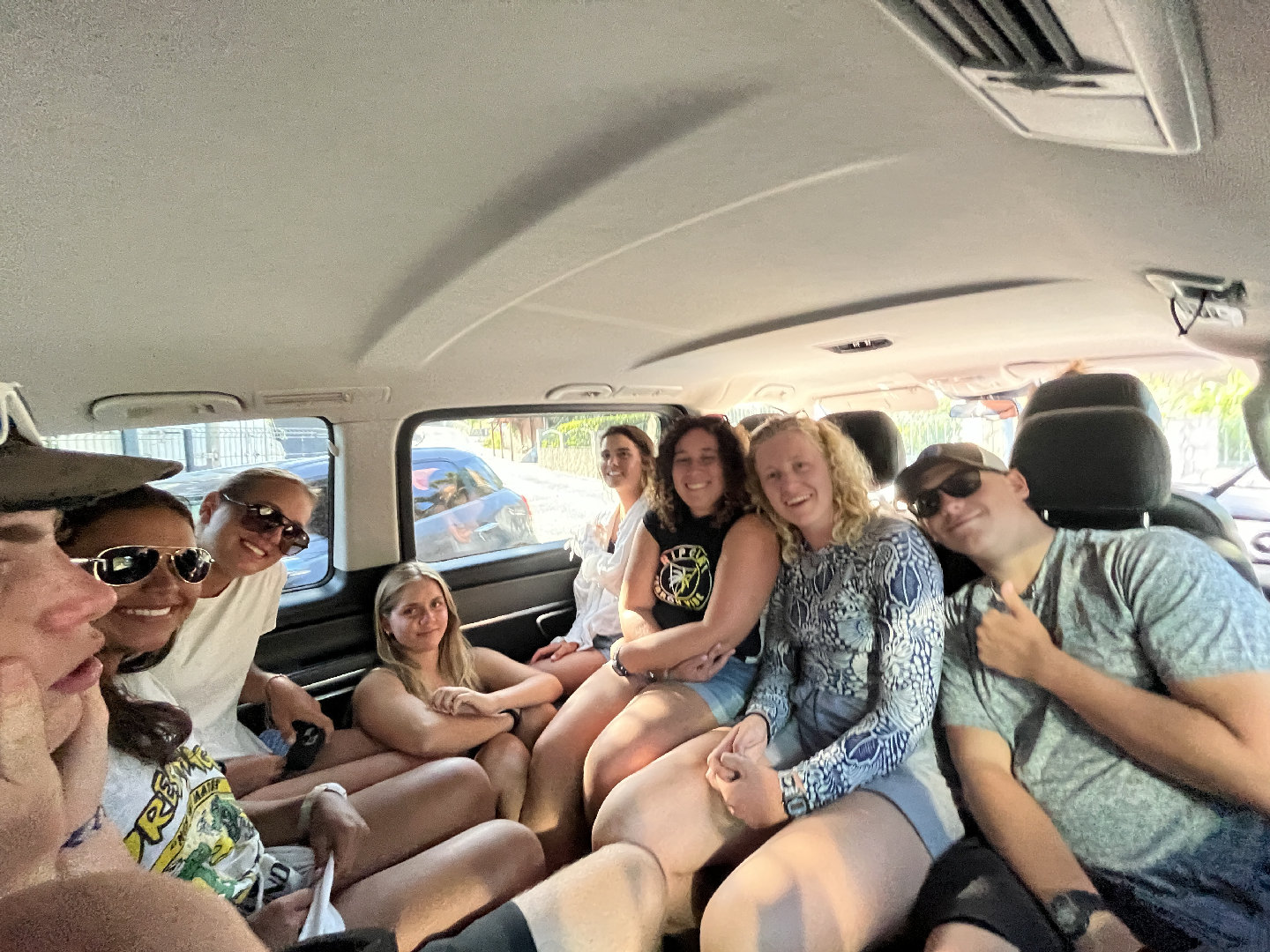 We spent all night sailing from Guadeloupe to arrive in St. Barths around 6 am, where we anchored in water that looked like Gatorade. This meant long hours spent on watch under the stars sailing and some pretty tired students when we woke up around 9. The first group of NavMasters took the two-hour exam in hopes of getting the certification before we had a lunch of bacon, egg, and cheese sandwiches on homemade bagels by Kackie. I think most would rank this a top three meal so far. After lunch, we scrambled to get our stuff together to be shuttled over to shore where we had a surf day! We got in a taxi to the beach, where we rented boards and spent a few hours surfing. Many waves were caught, and lots of water was swallowed, but it was a lot of fun, even though most of us were pummeled a few times. After surfing, we changed and took a very crowded taxi back into town to walk around for about an hour before we went out to dinner at a pizza place. Not just any pizza place, though METER LONG PIZZA (see photos)! It was delicious, and we stopped for ice cream before heading back to the boat, where we attempted some line dancing, and all hung out dancing around the deck before bed. It was a pretty epic day.