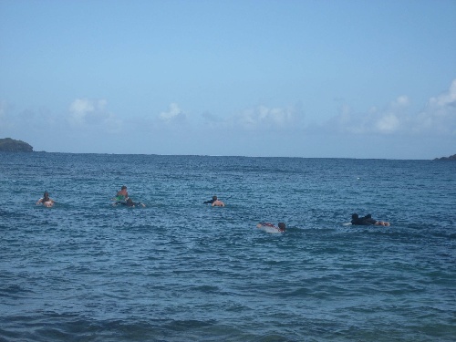 Today was the much-anticipated surf day! After our Thanksgiving dinner and night on the town, we were up at 7 a.m. for breakfast sandwiches made by the chef for the day, Dan. Then we shuttled over the mountain via mini-van and Taxi to Louriant Beach, where Jay was waiting with six surfboards of various shapes and sizes. We all took turns on the boards, with everyone opting to stay in the water even if they were not surfing. We had a blast picking waves and paddling frantically, and I think that everyone who paddled for a wave caught one. Surf day was a huge success, and everyone enjoyed the day in the sun. Once we were back on Ocean Star, the weather changed, so we had to have dinner and our two classes in the Salon.
