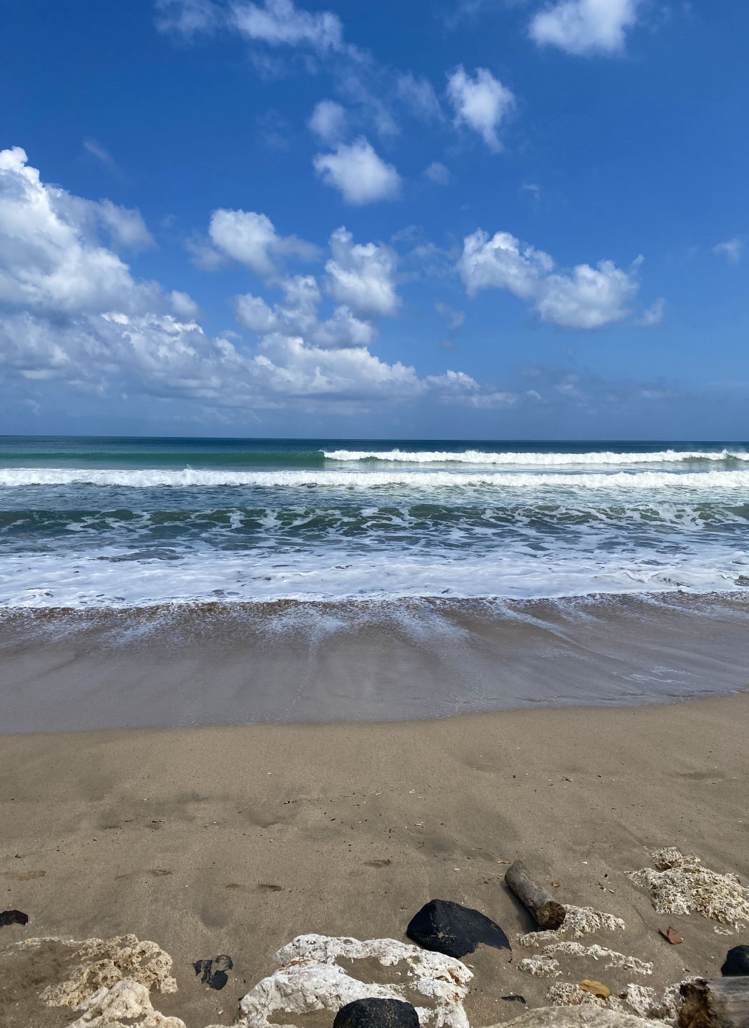 My little group of Margret, Kirstyn, Jack, Heloise, Sierra, Perry, and Dray roamed the streets and allies, popping into surf shops and cute boutiques until we found a cafe for coffee and smoothie bowls and a small restaurant for typical Indonesian food across the street. We shared a long, much-needed meal and relaxed for a while until we had digested enough to head back into town. Sierra got a boba, Margret went into the candy store of her dreams, and we bumped into our fellow boat mates in the mall, far too nice for how we all smelled, before continuing on. After tiring ourselves out of shopping and walking, Dray, Jack, and Sierra went off to find a 30-minute massage – which they did indeed find for only 6 dollars a person. Romeo, Kirstyn, Margaret, and I (we lost Perry and Wheeze along the way) headed down to the beach to spend the rest of our day. We sat on the beach and people-watched, and I had a very bittersweet, solo, last swim in the amazing south pacific ocean (last for this trip – I will be back). At 3 pm, we all filed back onto our bus, burnt and happily exhausted after a day well spent for the 45-minute bus ride back to sweet home Vela.