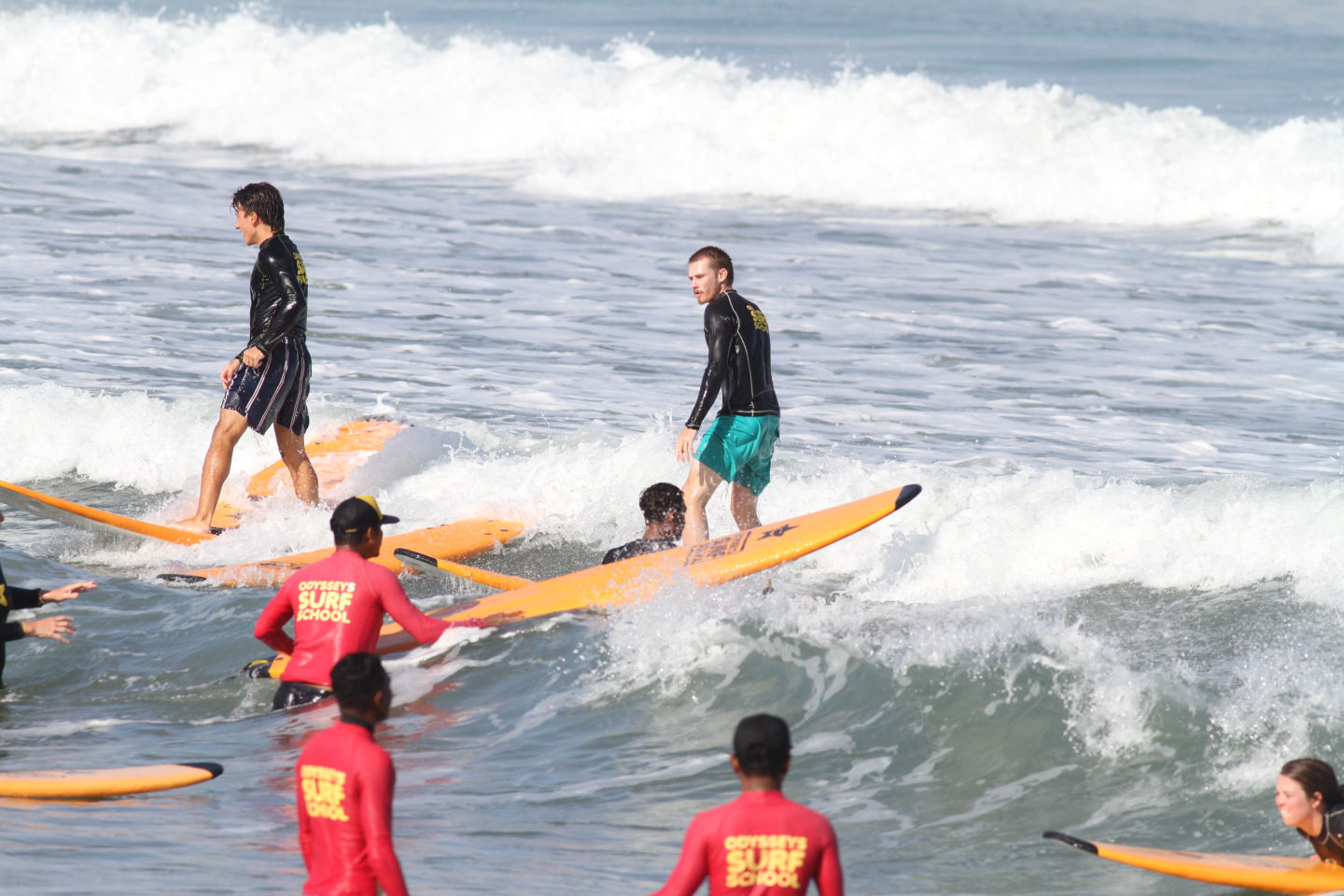 Hi! This morning I got the joy of waking everyone up far earlier than they wanted to after a late previous night. After a 6 am wakeup and a quick breakfast, we all walked down the dock to get on our bus for a morning of surfing. Once we got to the beach, we split up into our groups by skill level, got boards, and headed down to the water. We parted ways at the beach as my group headed out for the main break, and the beginners practiced some popups and then headed out into the whitewash. Dray, as always, looked incredibly graceful, Margret made best friends with her instructor (who did not want to hang out with her again tomorrow), and Kirstyn almost fooled absolutely no one that she was, in fact, sponsored by Red Bull. After about two hours of a lovely mix of pure bliss while on top of a wave and fighting for my life while trying to get back out, we headed back on shore to rejoin the others who had all become masters of the wave to return our boards. The rest of the day, we had to ourselves to do what we pleased. Everyone split into small groups to roam around the bust surf neighborhood, get some lunch, shop, and hang out.
