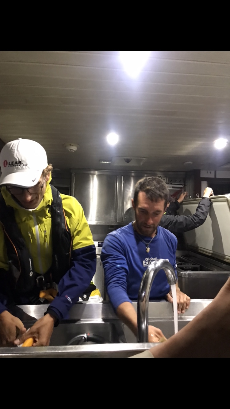 Pictured: (First) The aftermath of another awesome sunset, (Second) The amazing Amanda doing amazing Helm things, (Third) Action shot of Jonas and Dan cleaning in the galley.