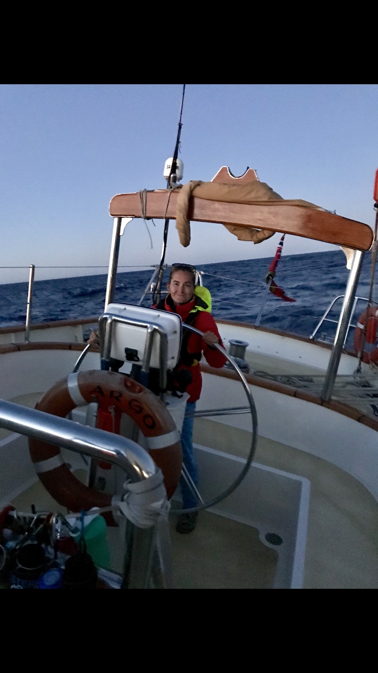 There’s something really nice about sticking your head out of the companionway for the first time in the morning. Aside from escaping the ever-present smell of BO, I got to look out at sea and realize that I was about to live another epic day in the Med sailing with 25 other kids. Truly I could not get over that. This glorious moment was interrupted as I remembered that I was still a newbie landlubber, and I staggered to my seat with all the grace of a near-sighted hippopotamus with a hangover. Considering the large swells, Argo was rolling over. There was a lot of staggering done by the crew and me.