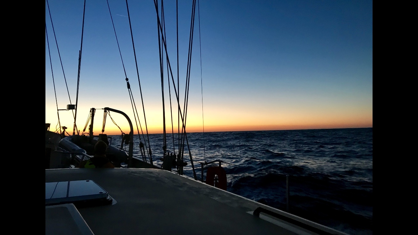 As far as sailing days go, this one was quite relaxed, a welcome rest after spending hours yesterday watching people vomit over the side of Argo. We had two classes down in the Salon, Marine Bio and Oceanography. They were both fascinating subjects taught by excellent teachers, but that didn’t stop our eyes from drooping and our heads from nodding. At night, I can barely sleep for all the bouncing and rolling we’re doing, but during the day, the soporific rocking of the waves puts me right to sleep. Most of the crew napped after that while the rest of us took some much-needed showers. After a cold shower, I galumphed onto the deck where I had bow watch with Emmalee, a crew member of whom the only thing brighter than her smile is her heart. The soup we had left a little to be desired (chef’s words), but it reminded me of home, and that was nice (no offense, mom). The sunset was absolutely serene, and I was filled with a sense of peace that I think the rest of the crew felt as well. All in all, it was a wonderful day.