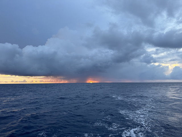 Quite regularly, I find myself enjoying a hot cup of black coffee (definitely different for my taste, but it has grown on me quite a bit) on the bow of the boat, just staring off into the waves, just so overly grateful that I am alive and able to experience all of this. To me and many of us, it has been like a fantasy more than a study abroad. I never thought I would be able to wake up in an environment like this, and the gratitude I feel to my family at home (I love and miss ya!), the staff, and my crew-mates alike is enormous. The more time I spend here, the more I’ve fallen in love with life at sea. Gorgeous sunsets crest the horizon, and at night, almost magical bioluminescence reflects the milky way galaxy on a rainy night. Not everyone gets an opportunity to see things like this in their lifetime. So I know everyone here is grateful.