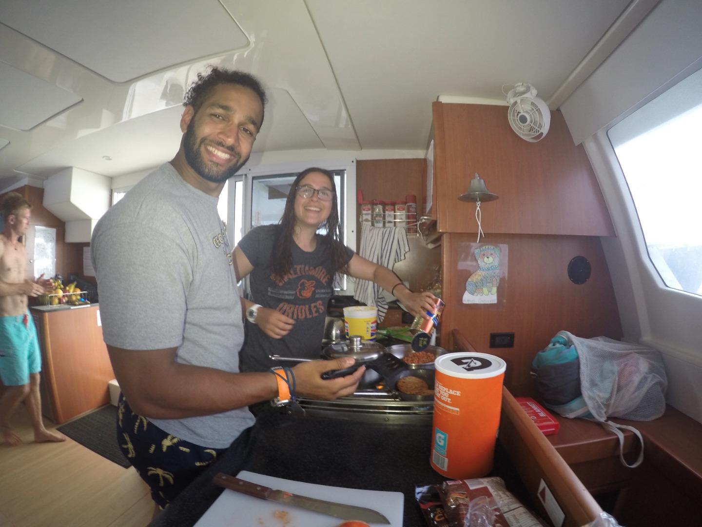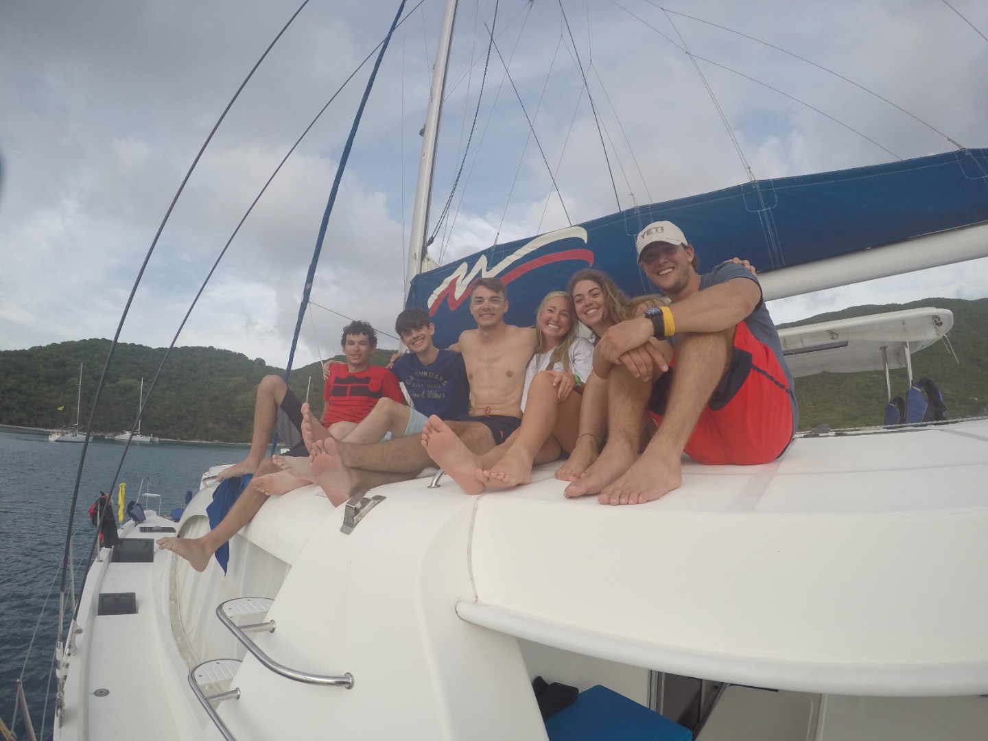 Wakeups started at 7 am this morning, preceded by a long night with no wind and a troublesome anchor issue fixed at midnight. Though the night before was long, we were very much looking forward to the diving to come. Breakfast was oatmeal with a dash of honey and a ladle of boiling water. After breakfast, the soon-to-be-open water divers had an exciting morning, learning new skills and exploring new reefs, while the already certified divers went on a short snorkeling trip. During our lunch of mac n’ cheese and PB&J, our friendly mountain man Rivers was surprised with a push into the drink by our fearless leader Anna lane, which he was asking for. Lunch clean-up was delightful as we scraped Matouk’s hot sauce-infested mac n’ cheese off the bowls with our fingers tips, leaving a spicy treat awaiting under our fingernails for later. After, we headed over to Oceanstar for our seamanship class, where we were given the task to assemble a plethora of knots, which we all excelled in. As we were itching to get in the water, it was time to dive the rebar and chicken wire art of a Kraken atop a newly sunken ship; the dive site is ingeniously named, The Kraken. After drying off from the dive, we returned to our beloved cat on the blue for some veggie burgers, oh so delicious. It is getting late, and we are soon to be heading to Leverick Bay to resupply before our daylong passage to Nevis. Goodnight, Seamester blog, till next time.
