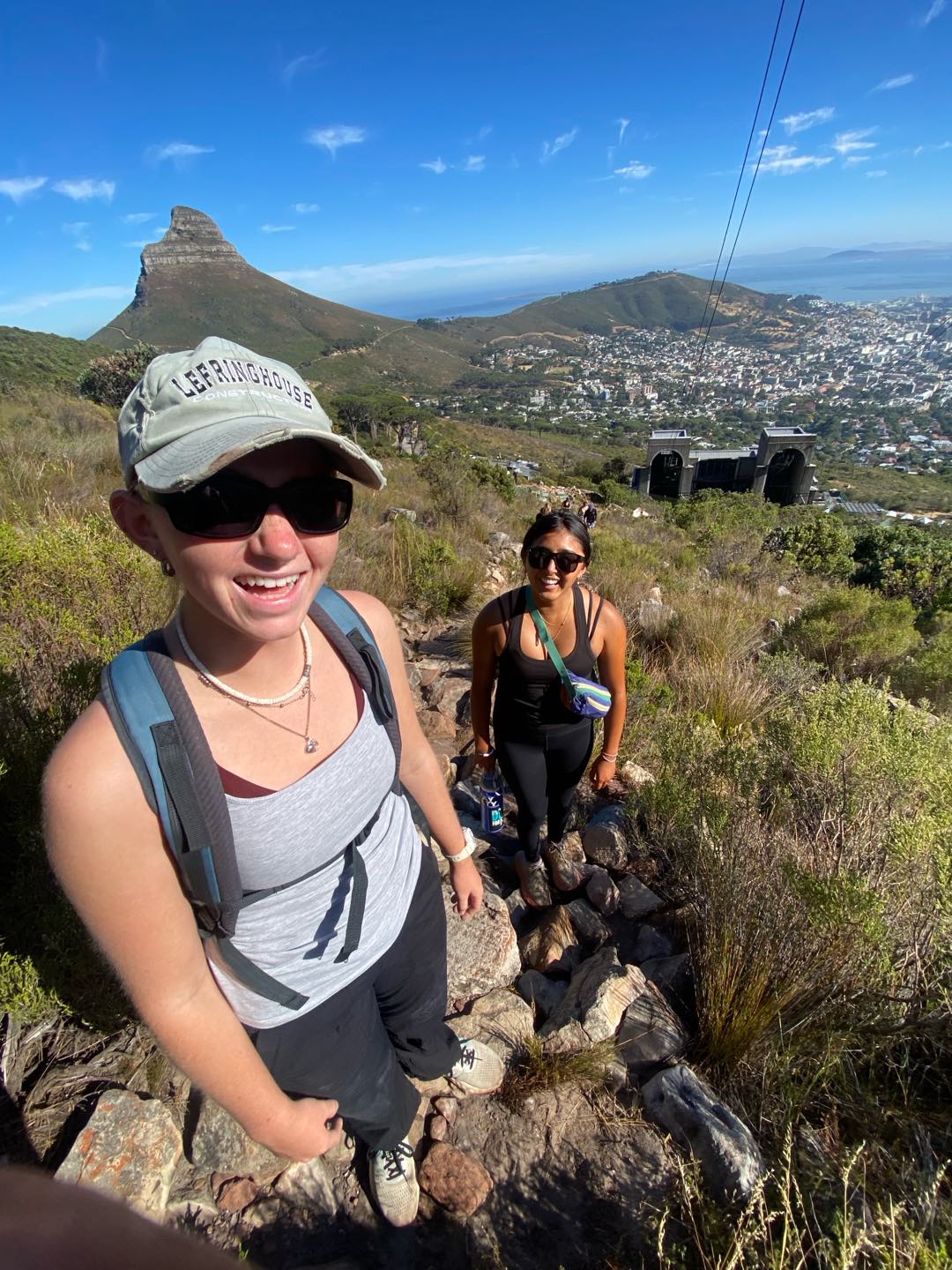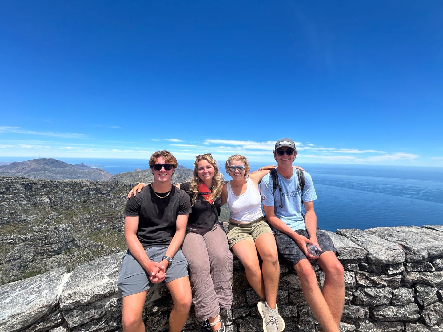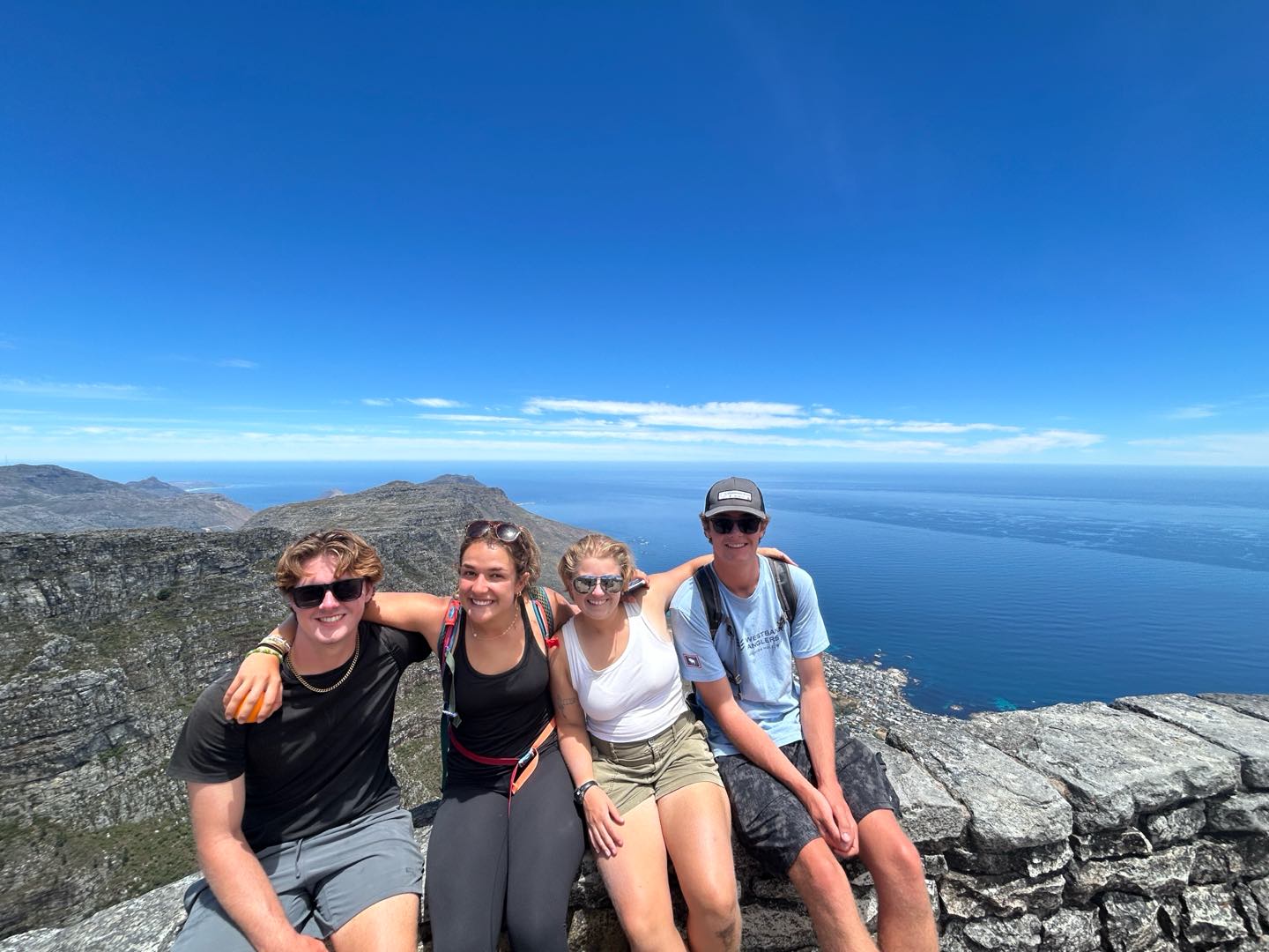 Today started off with an abrupt awaking from Payton at 5:30, reminding me I had to wake everyone else up. I don’t think Payton slept at all last night. I saw her cooking at 12 when I went to bed, and cooking at 5:30 am when she woke me up. It was worth it, though, because she made us a lovely breakfast as well as lunch to take with us on our hike. Speaking of the hike, today was the day we conquered Table Mountain. Highly coveted and feared by Henry, Table Mountain is one of the seven natural wonders of the world, and it was time to climb it. After eating breakfast and making an emergency shore head run with a few of my peers, we were off! By the time we got there, it was already 80 degrees out at 8 am. Yikes! Anywho, after caffeinating at the local cafe, we’re off on our way. Immediately, we were met with steps, and that’s just about all we saw for the next 20 minutes until it finally leveled out. Thinking we were out of the hard part, we happily gallivanted along a flat section until we were met with more steps. This time, the steps didn’t stop for about the next hour and a half. At this point, Perry and I had long lost the rest of the crew. It was at this point that I realized Perry hadn’t drunk any water the whole hike and didn’t have any with him, causing me to force him to drink my water. Anywho, after successfully making it to the top, we were met with Jewel, who took the cable car up. She was making new friends with some locals, as she often does. Soon after, Vera arrives, followed by the rest of the crew. At this point, it was safe to say we all underestimated the hike and understood why most people take the cable car up, but we were all so glad we did it. We also found it strange that one of the seven natural wonders had a coffee shop on top of it, but it did come in handy. After eating and caffeinating again, we made our way down. When we got back to the boat, Maia Fin Rai-Ching and I went to the lounge and worked on our cards.