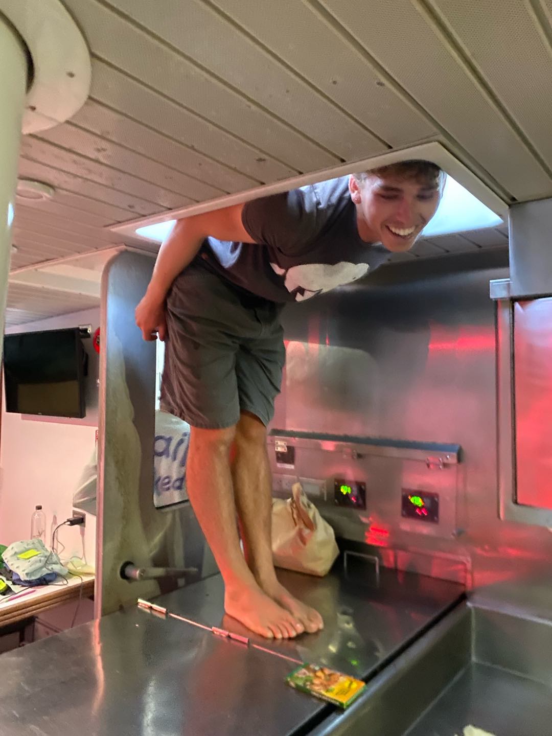 24 cards to all the staff, students, office, and ourselves that we will give out on day 90. After going through a whole pen, we made our way back for dinner, which was some wonderful egg drop soup with a side of cookies crafted by Emma. So scrumptious! After dinner and cleanup, we held a clothes swap in the salon. Some crazy trades went down, and I got the most epic shirt from Hannah. I also traded my swim trunks that Perry found at the bottom of the ocean in Christmas Island for his jorts. This brings me to now, where I am writing the blog while Alice Hannah, Fin, Maia, and Thaxton continue to write their cards.