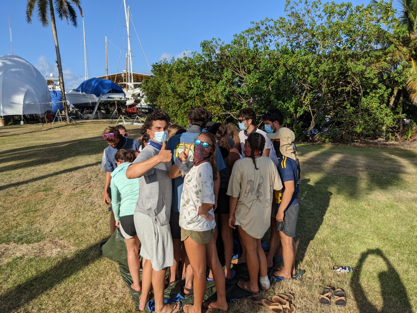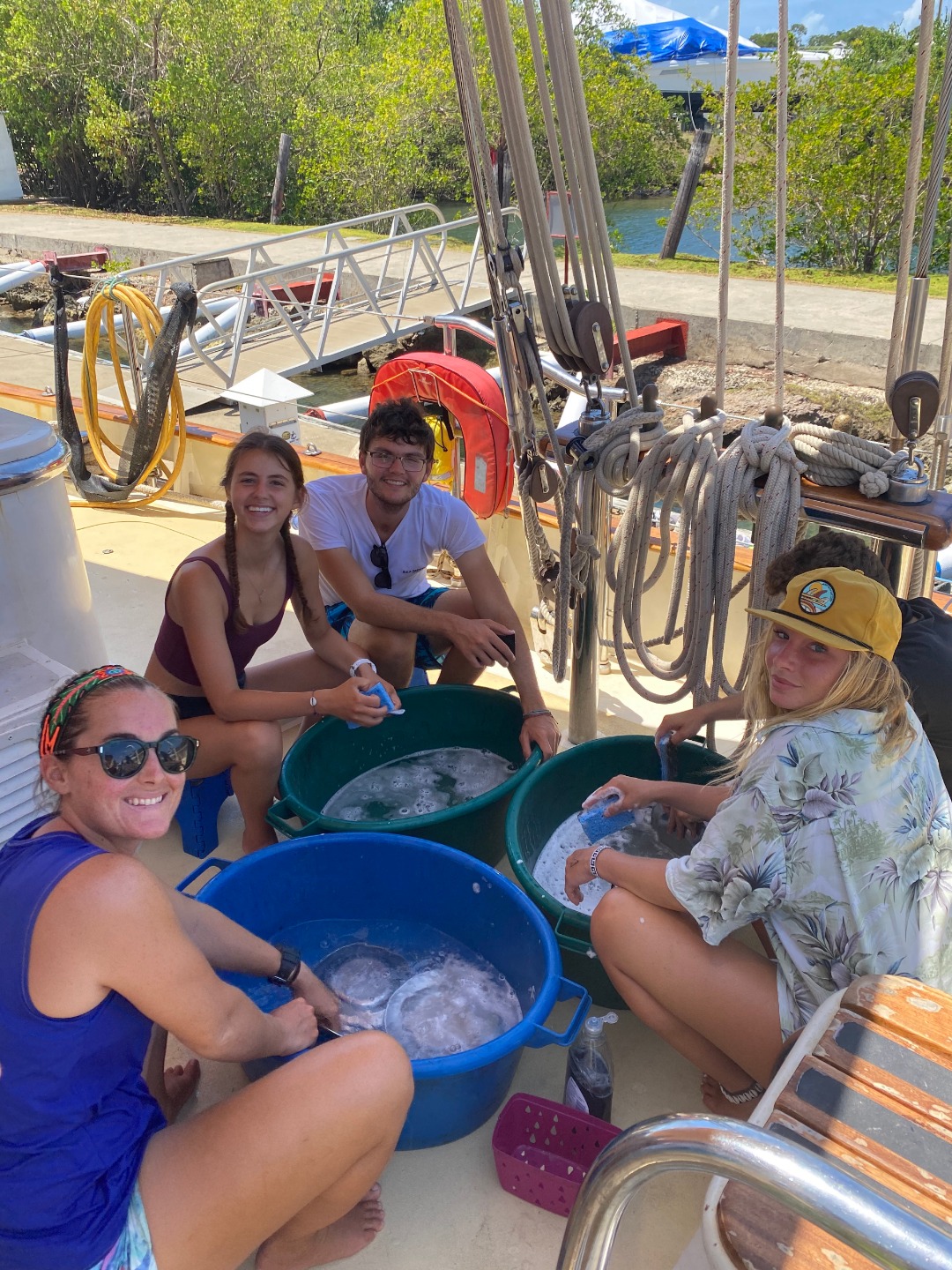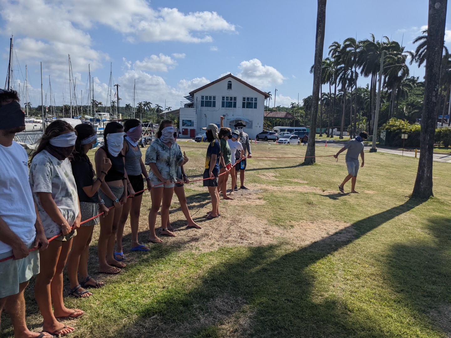 This morning started off with a last-minute sunrise study session for our marine bio exam followed by some freshly baked bread for breakfast… delicious. After breakfast, we went in small groups to the marina mini-mart to restock our personal snack supply as well as some more studying. After lunch, we took our first marine biology exam and then headed back on land for some leadership exercises and some pick-up soccer. Natalie set the tone early by sacrificing her body to save a couple of balls from going out of bounds, while Niko used his D1 volleyball skills to lead his watch team to 105 consecutive ball taps without it hitting the ground. It was looking promising for watch team one to be the second team to make it to 105 until Felipe got distracted by a big white fluffy dog. Sam and Frankie were caught crying in the kitchen while chopping up some onions for dinner but quickly made up for it with a plentiful amount of hot dogs. After dinner, Felipe and Nick called a team meeting to discuss a possible vacation week after day 90 in French Polynesia. Many cool activities and ideas filled our heads without much of a consideration for funds. Everyone was so keen on the idea of maybe going surfing or renting a few small dinghy sailboats that we think it may be worth sacrificing a couple of meal dollars. All we know is that whatever happens, we’ll be with some cool people in a very cool place. In the meantime, we are awaiting Renee’s much-anticipated history of the Panama canal exploitation presentation before we start our final preparations to for our trek through the canal tomorrow morning. Signing off.