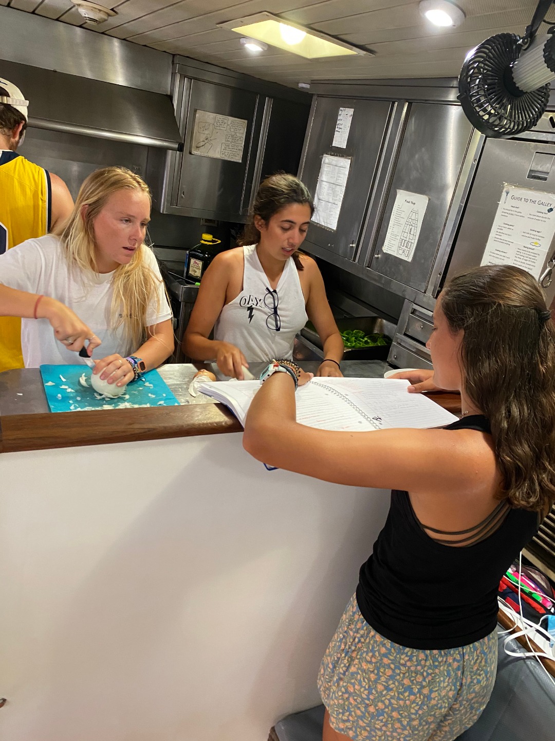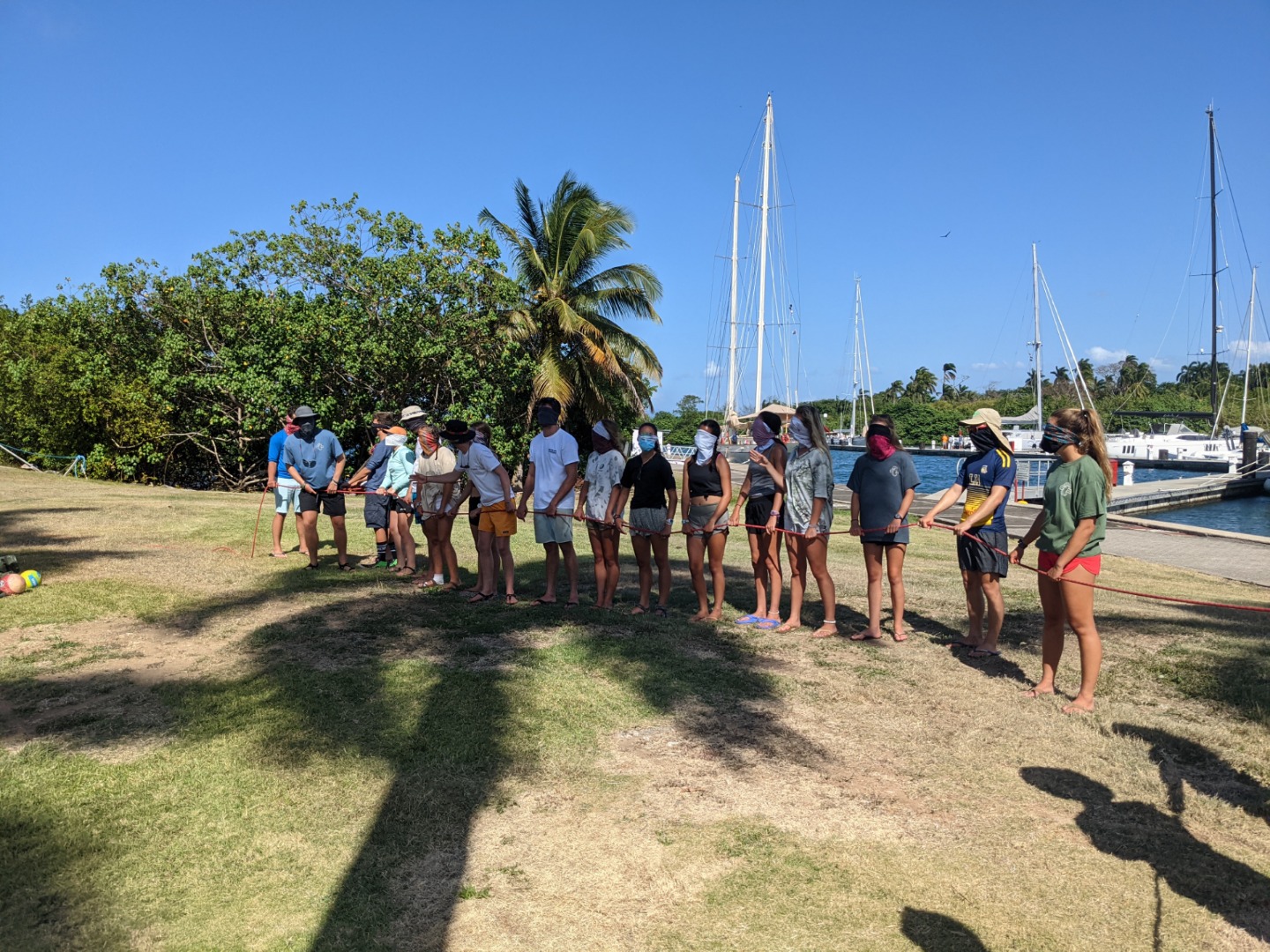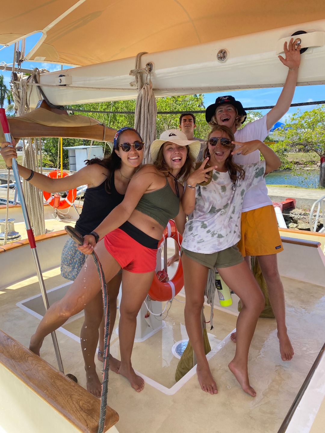 This morning started off with a last-minute sunrise study session for our marine bio exam followed by some freshly baked bread for breakfast… delicious. After breakfast, we went in small groups to the marina mini-mart to restock our personal snack supply as well as some more studying. After lunch, we took our first marine biology exam and then headed back on land for some leadership exercises and some pick-up soccer. Natalie set the tone early by sacrificing her body to save a couple of balls from going out of bounds, while Niko used his D1 volleyball skills to lead his watch team to 105 consecutive ball taps without it hitting the ground. It was looking promising for watch team one to be the second team to make it to 105 until Felipe got distracted by a big white fluffy dog. Sam and Frankie were caught crying in the kitchen while chopping up some onions for dinner but quickly made up for it with a plentiful amount of hot dogs. After dinner, Felipe and Nick called a team meeting to discuss a possible vacation week after day 90 in French Polynesia. Many cool activities and ideas filled our heads without much of a consideration for funds. Everyone was so keen on the idea of maybe going surfing or renting a few small dinghy sailboats that we think it may be worth sacrificing a couple of meal dollars. All we know is that whatever happens, we’ll be with some cool people in a very cool place. In the meantime, we are awaiting Renee’s much-anticipated history of the Panama canal exploitation presentation before we start our final preparations to for our trek through the canal tomorrow morning. Signing off.