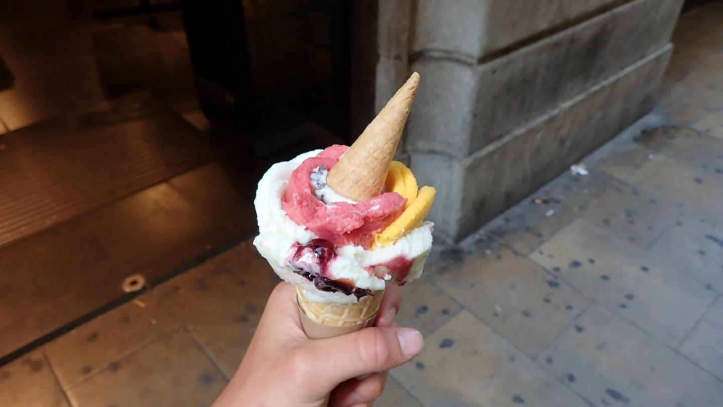 Pictured: Beach of Barcelona; Gaud Fountain; La Sagrada Familia; La Catedral; La Plaza Santa Jaume; Gelato.